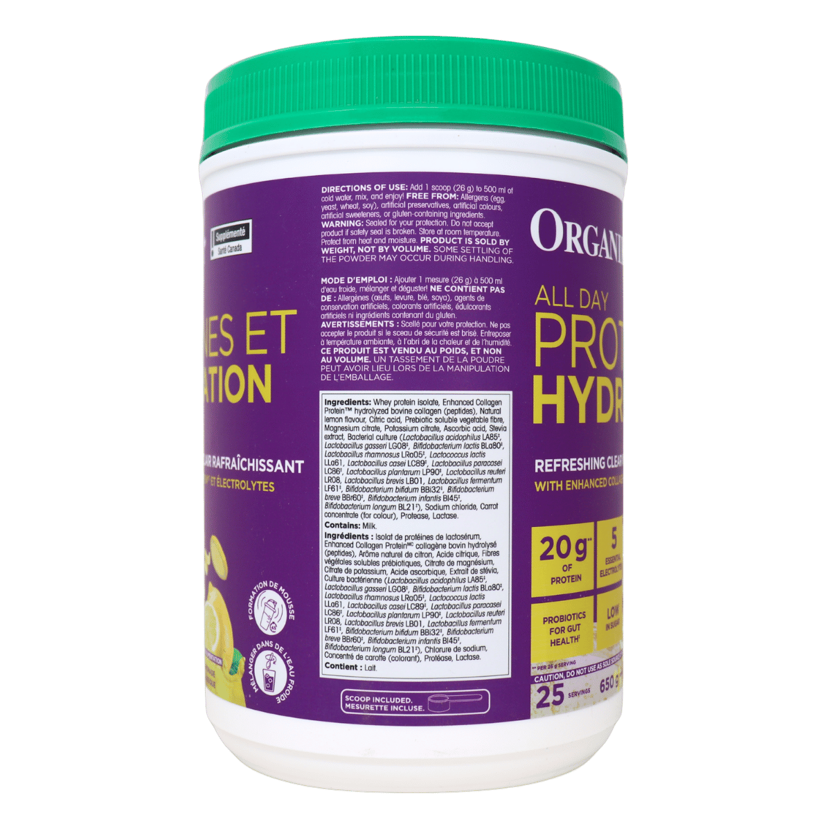 Bright, crisp, and hydrating, Organika All Day Protein Hydrator in Lemon delivers clean protein and electrolytes in one refreshing scoop. With 20 grams of clear whey isolate, added collagen, and essential electrolytes, it’s designed to support hydration, recovery, and performance throughout your day.