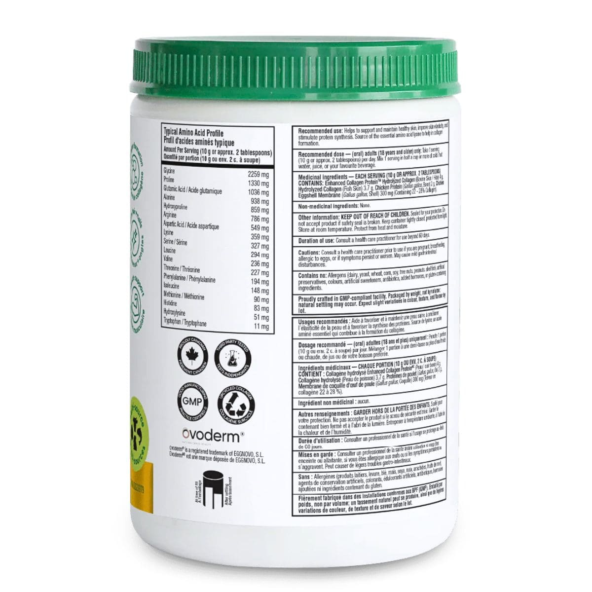 MEDICINAL INGREDIENTS: EACH SERVING (10 g OR APPROX. 2 TABLESPOONS) CONTAINS: Hydrolyzed Collagen (Bovine Skin / Hide) 4 g, Hydrolyzed Collagen (Fish Skin) 3.7 g, Chicken Protein (Gallus gallus, Bone) 2 g, Chicken Eggshell Membrane (Gallus gallus, Shell) 300 mg (Containing 22 - 28% Collagen).