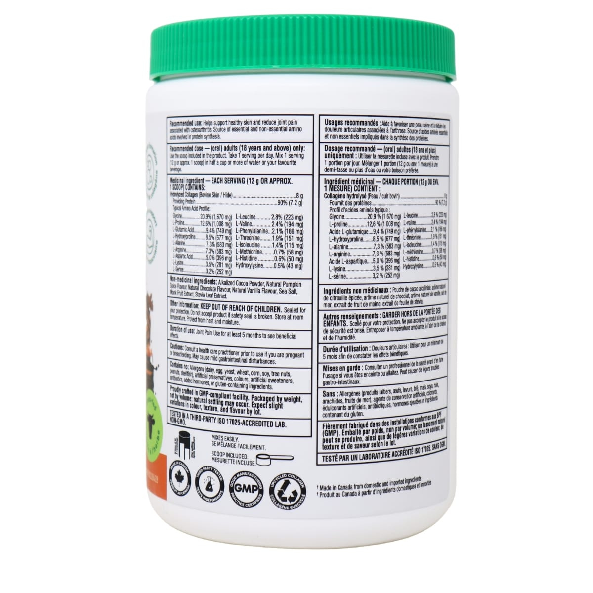 NON-MEDICINAL INGREDIENTS: Alkalized Cocoa Powder, Natural Pumpkin Flavour, Natural Vanilla Flavour, Sea Salt, Monk Fruit Extract, Stevia Leaf Extract.