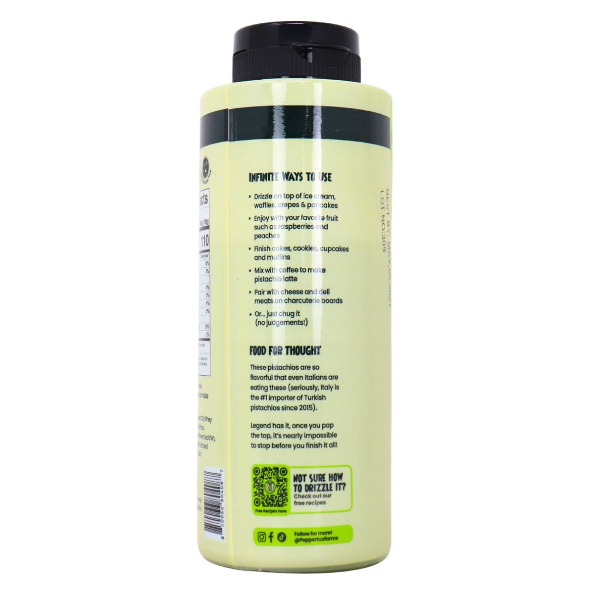 Designed with desserts in mind, this drizzle shines over fruit, yogurt, baked goods, and sweet finishes, adding a creamy pistachio layer with just the right amount of sweetness. It drizzles easily, making it simple to use as much or as little as you like, whether you’re dressing up a simple snack or finishing a more composed dessert.
