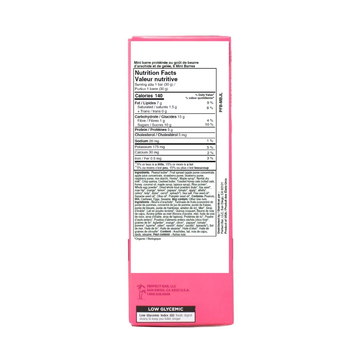 A good old-fashioned PB&J, now made even better! Meet the Perfect Bar Mini PB&J. It’s a mini protein bar with mighty flavour and a wholesome upgrade that’s anything but ordinary. Layering rich, creamy organic peanut butter and cashew butter with a pop of 100% real fruit spread and finished off with a sprinkle of toasted gluten-free oats for a subtle crunch, just one bite of Perfect Bar's protein bar will have you going nuts! Made with just all-natural and simple ingredients, this peanut butter protein bar is packed with 5g of protein and lightly sweetened with honey and maple syrup. With a soft, cookie dough-like texture, Perfect Bar is fridge-fresh to lock in that straight-from-the-kitchen taste.
