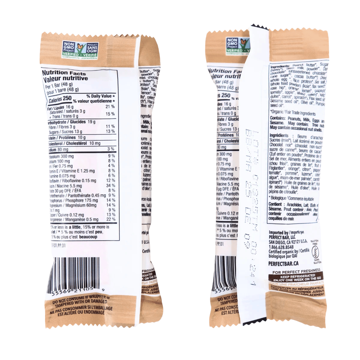 Perfect Bar Protein Bar Snack Size Peanut Butter, 46g – Peanut Butter*, Sugar (Honey*), Skim Milk Powder*, Dried Whole Egg*, Rice Protein*, Whole Food Powders (Kale*, Flax Seed*, Rosehip*, Orange*, Lemon*, Papaya*, Tomato*, Apple*, Alfalfa*, Celery*, Kelp*, Dulse*, Carrot*, Spinach*), Flax Seed Oil*, Sesame Seed Oil*, Olive Oil*, Pumpkin Seed Oil*
