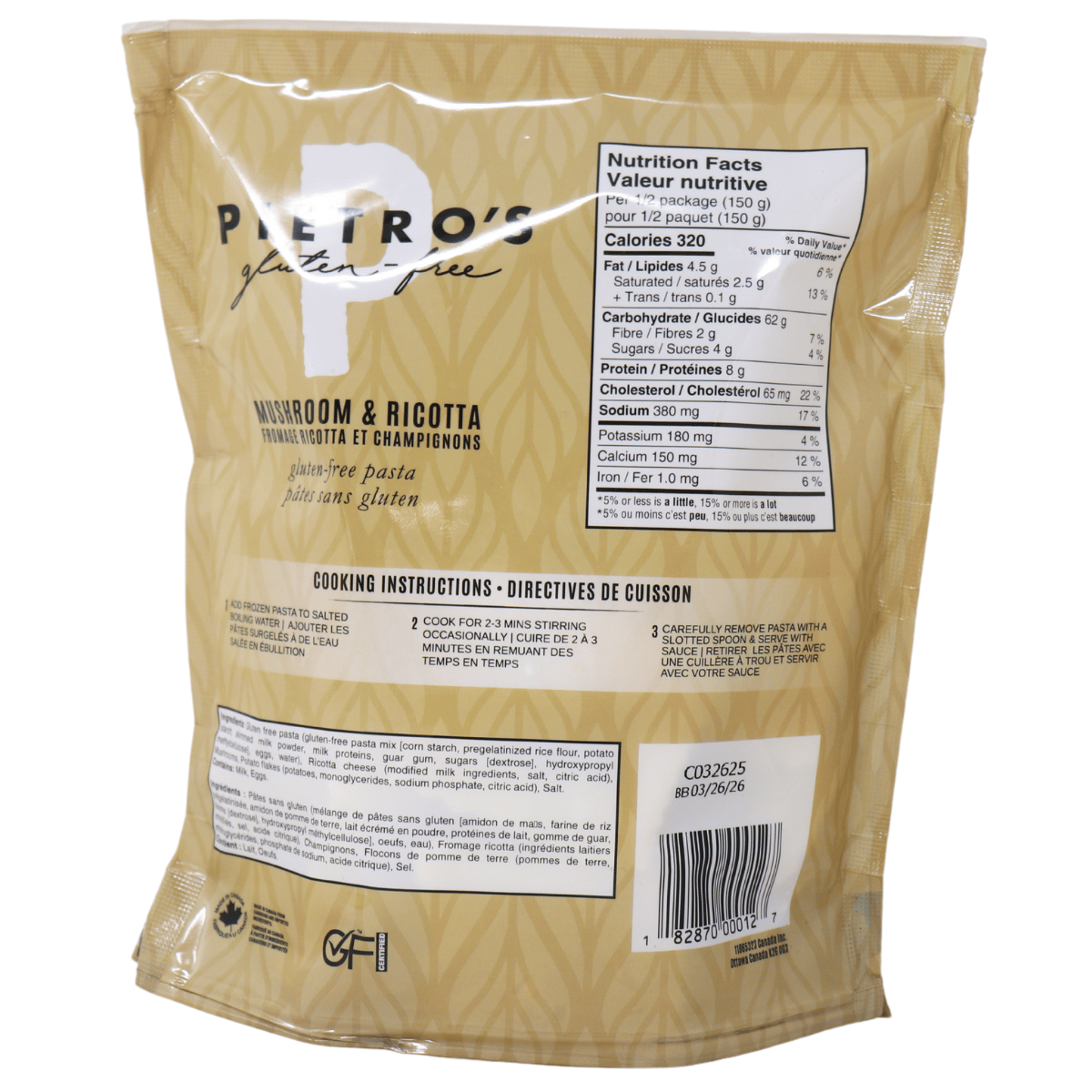 Pietro’s Gluten-Free Mushroom & Ricotta Ravioli makes it easy to put a rich, comforting pasta dish on the table without making the dough yourself. These generously filled ravioli bring together savoury mushrooms and smooth cheese in a filling that feels luxurious, but cooks in minutes. Ready to hold their shape and filling in the water, and bring pasta night to the whole family again, thie gluten-free ravioli is perfect for those nights where you crave the flavour of homemade pasta dough.