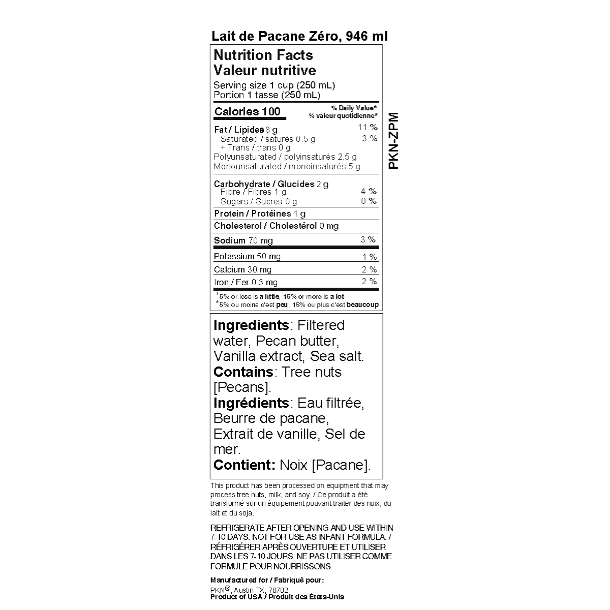 Filtered water, Pecan butter, Vanilla extract, Sea salt.