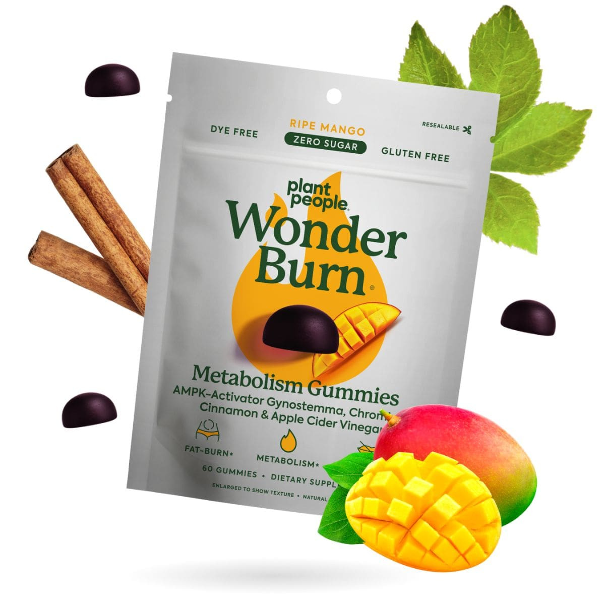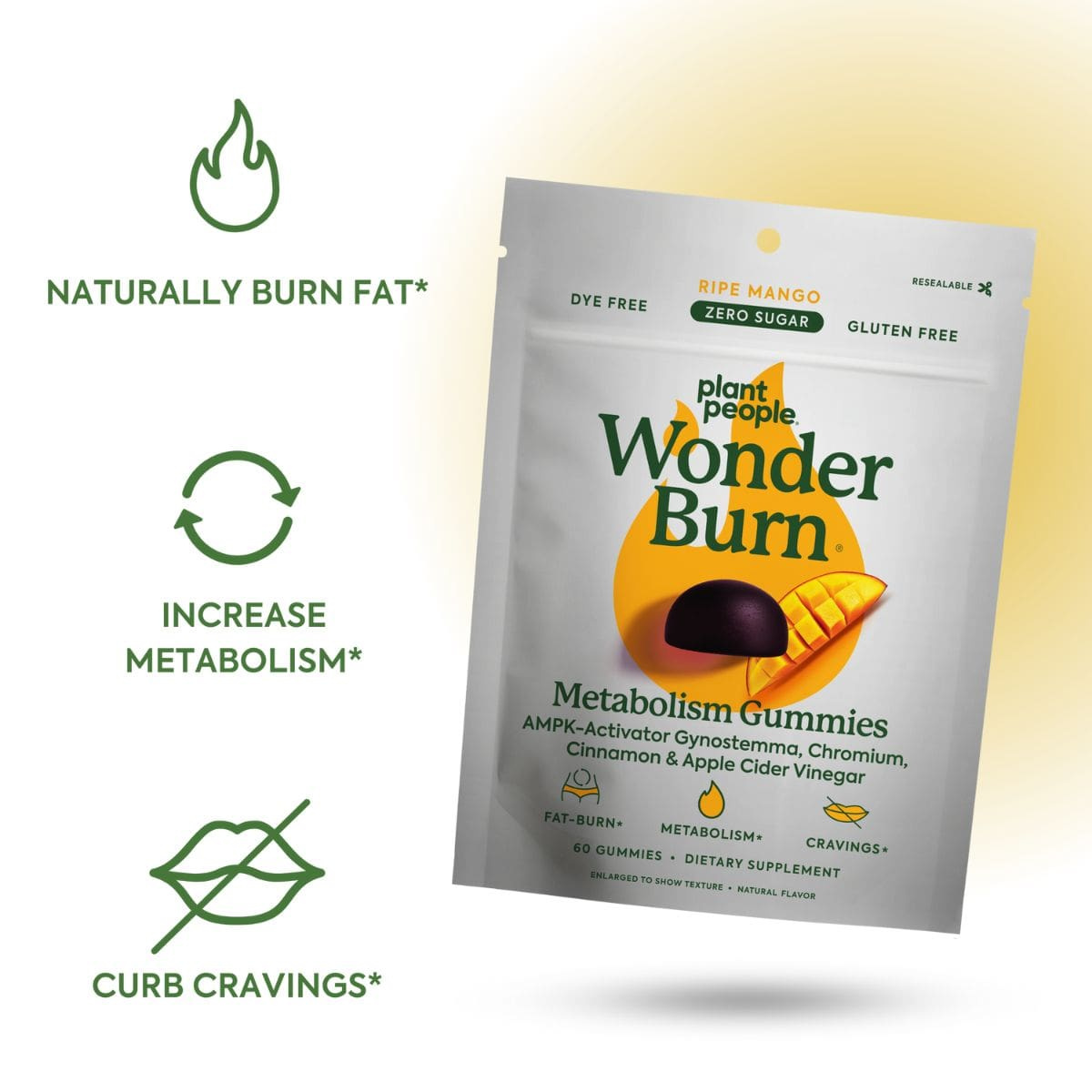 Plant People Zero Sugar Vegan Metabolism Gummies WonderBurn Ripe Mango, 60 Gummies
