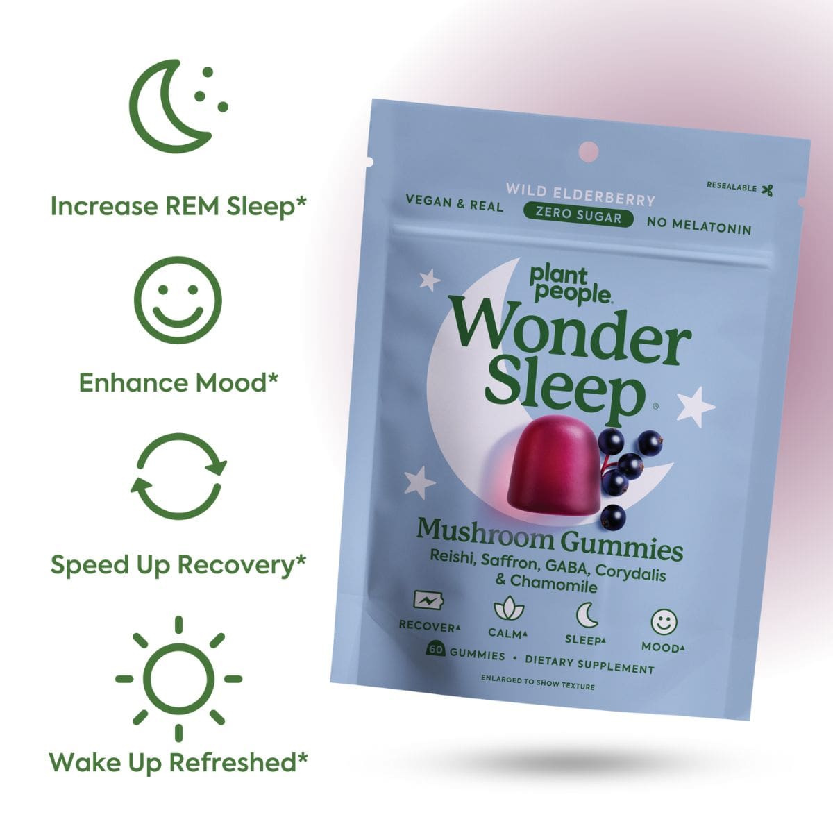 Plant People Zero Sugar Vegan Mushroom Gummies WonderSleep Wild Elderberry, 60 Gummies