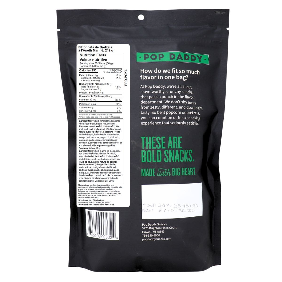 Sharp, tangy, and full of that classic pickle bite, these dill-coated pretzel sticks bring instant snacking energy. Pop Daddy Dill Pickle Pretzel Sticks take everything people love about briny, deli-style crunch and wrap it around a sturdy seasoned pretzel for a snack that pops from the very first handful. Each stick is coated generously, giving you that bright dill hit and zingy vinegar snap in a way that feels bold, fun, and completely addictive.