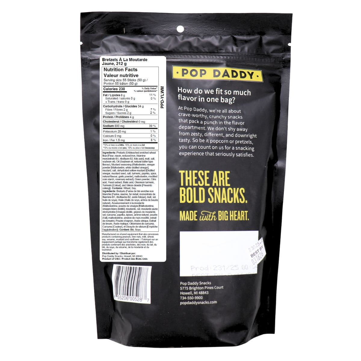 Keep a bag on hand for gatherings, stash one in the pantry for savoury emergencies, or pair it with sandwiches, charcuterie boards, and cold drinks. Pop Daddy Yellow Mustard Pretzel Sticks are bold, lip-smacking, and totally unforgettable, snacks with real crunch and big attitude.