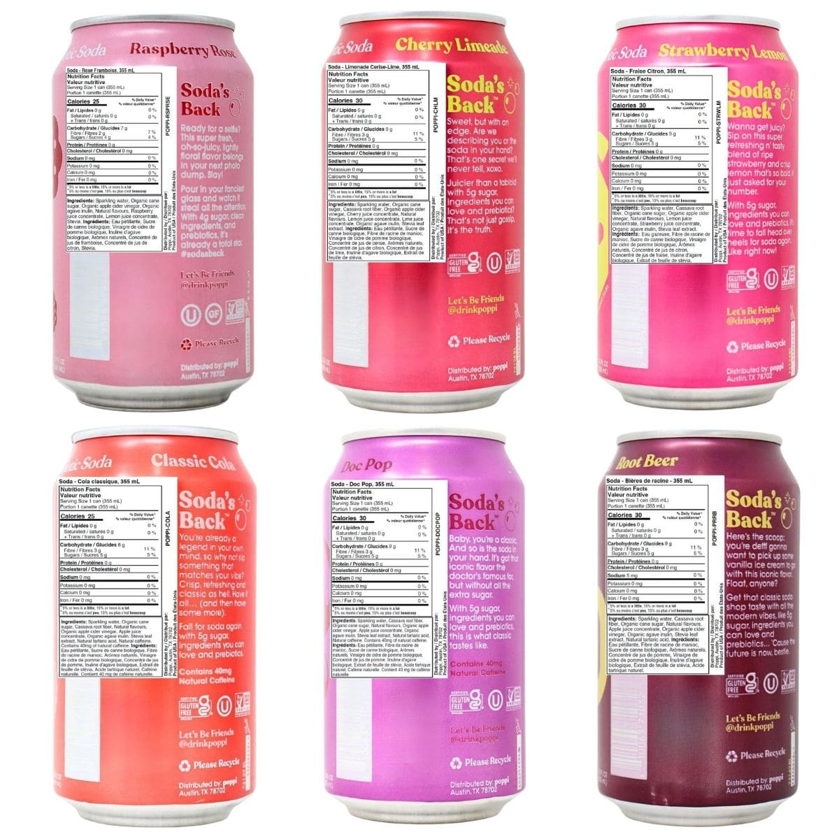 Pop quiz time–what’s your favourite Poppi prebiotic soda flavour? Is it the sweet and flirty Raspberry Rose, the fruity and fabulous Strawberry Lemon, or the tangy twist of Cherry Limeade that tickles your taste buds? Maybe you're all about the nostalgia, sippin' on the one and only Doc Pop. Or perhaps you're keeping it classic with the timeless Root Beer or the OG Cola. Trick question–you don't have to choose! With our new Poppi Best Sellers Variety Pack, you can have it ALL! Packed with gut-healthy prebiotics, each drink only has ~30 calories and ~5g of sugar or less! Now that’s seriously poppin’!