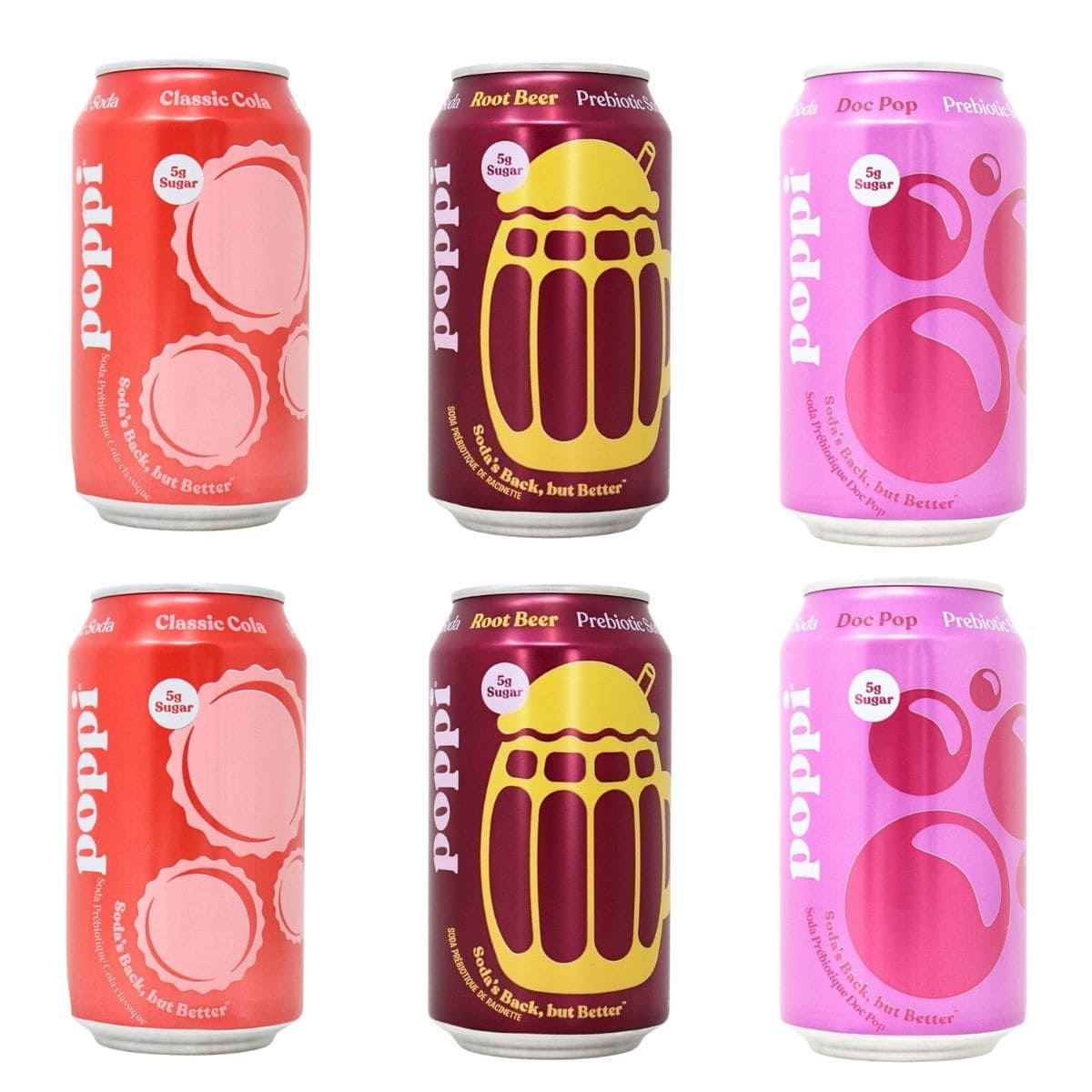 Poppi Prebiotic Soda Cola, 355ml - Sparkling water, Organic cane sugar, Cassava root fiber, Natural flavours, Organic apple cider vinegar, Apple juice concentrate, Organic agave inulin, Stevia leaf extract, Natural tartaric acid, Natural caffeine. Contains 40mg of natural caffeine.