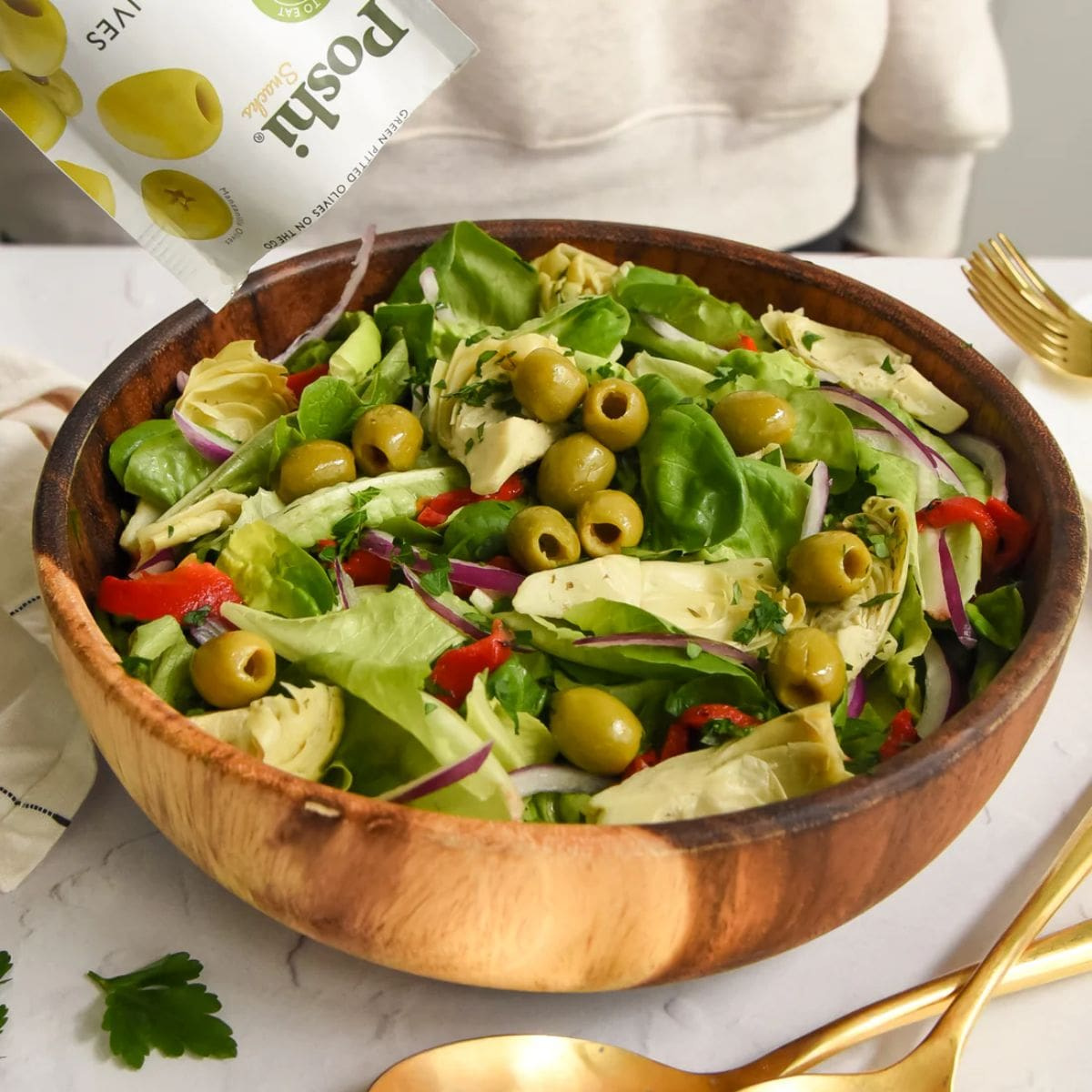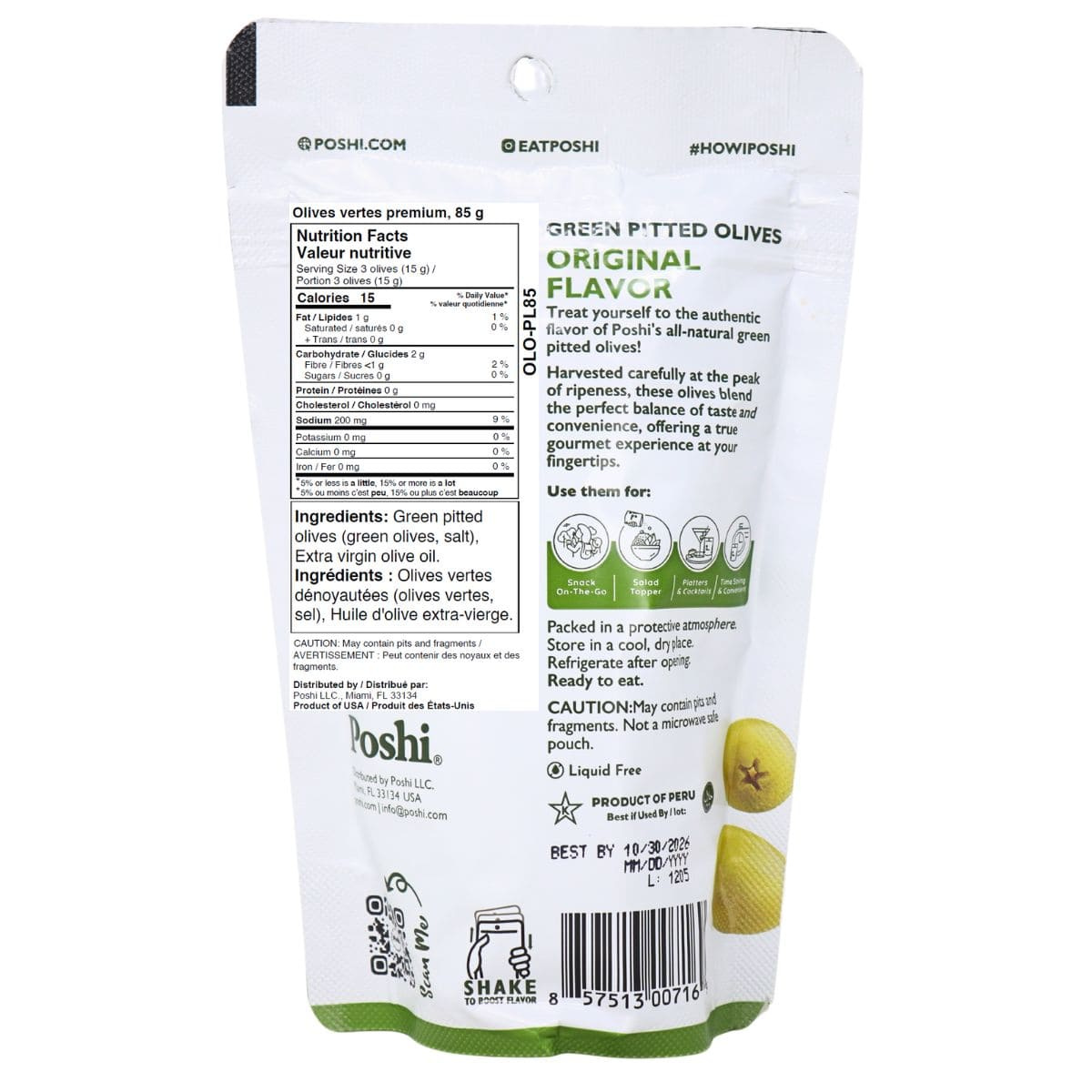 With Poshi's premium pitted green olives, convenience meets gourmet in the most delightful way. With a convenient, liquid-free pouch, you can enjoy delicious Manzanilla olives anytime, anywhere, all mess-free! Plump and juicy, Poshi’s all-natural olive snacks are ready to accompany you on all your adventures, from bustling boardrooms to classy charcuterie boards in the park. Just one bite and you’ll be shouting, “olive you, Poshi”!
