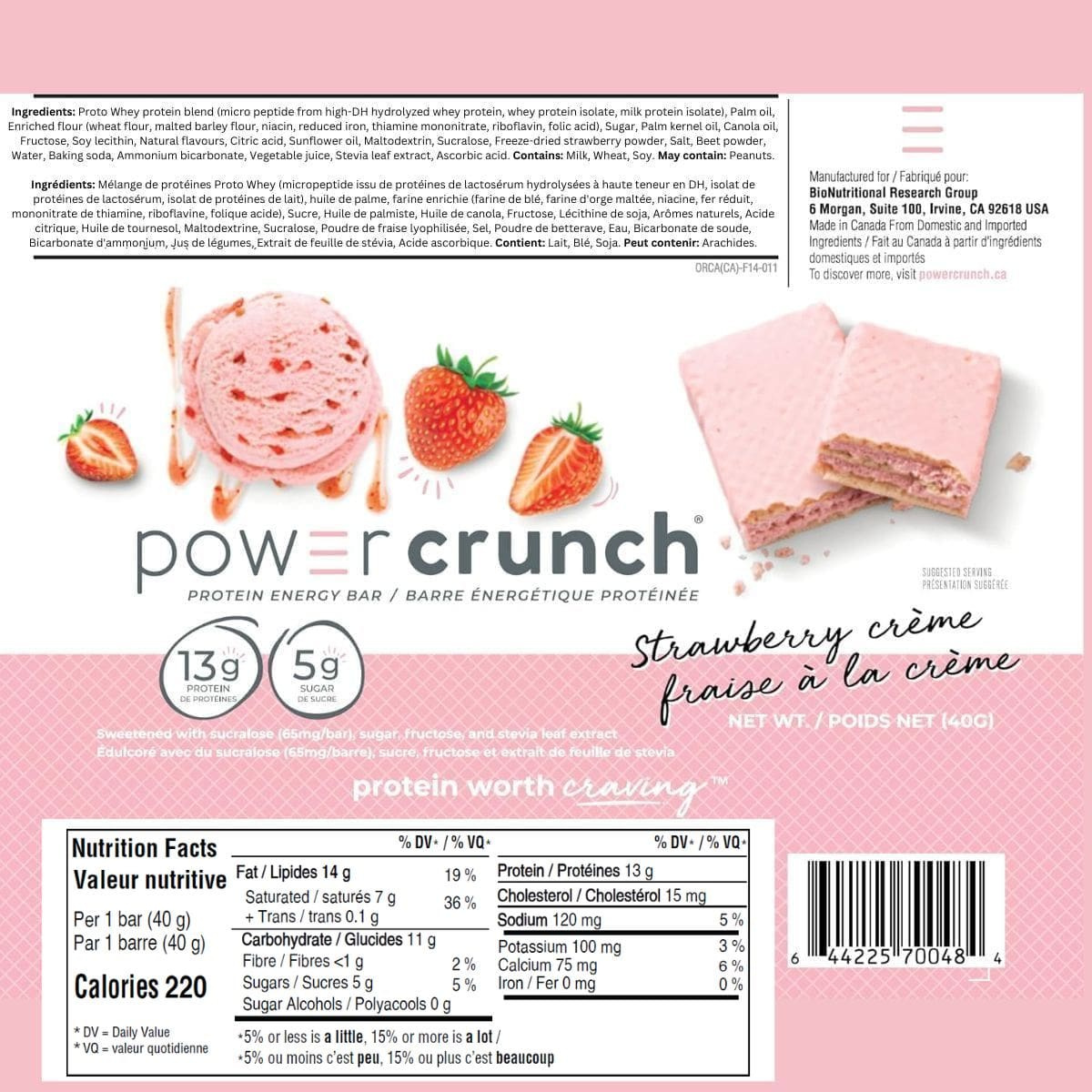 Take a bite. Feel the crunch. Power through anything with Power Crunch bars! With a luscious strawberry crème flavour and layers of light and crispy wafer, this is no ordinary protein bar. It’s dessert in disguise! Packed with 13g of protein and only 5g of sugar, this wafer protein bar is where unstoppable energy meets unbeatable flavour. So you can power up and crunch on with Power Crunch!