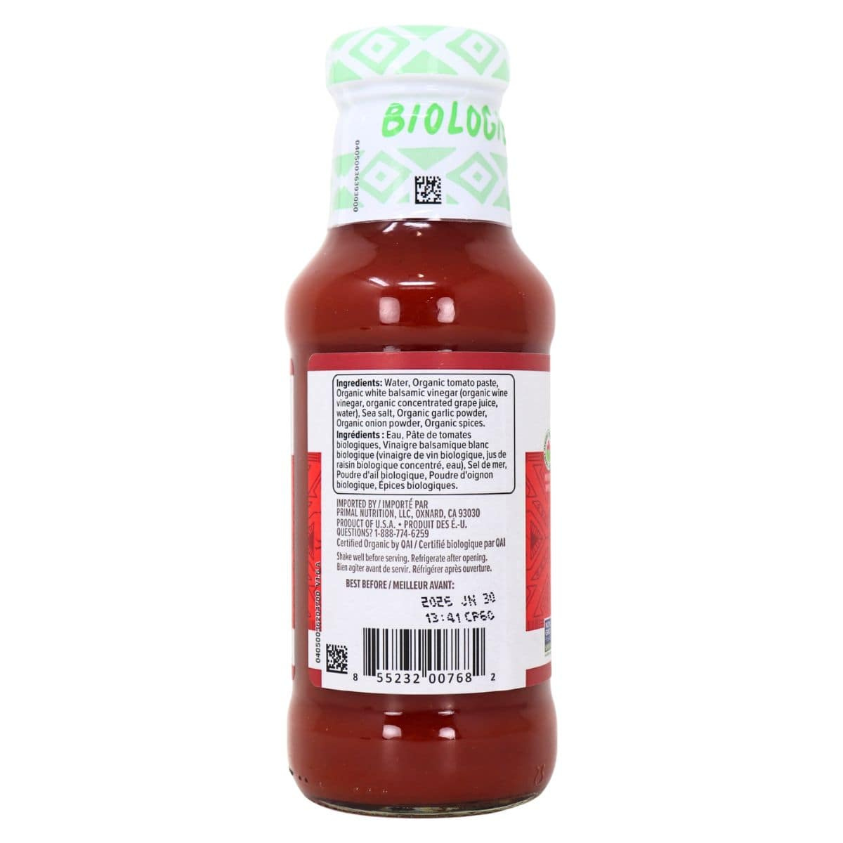 Water, Organic Tomato Paste, Organic White Balsamic Vinegar (Organic Wine Vinegar, Organic Concentrated Grape Juice, Water), Sea Salt, Organic Garlic Powder, Organic Onion Powder, Organic Spices.