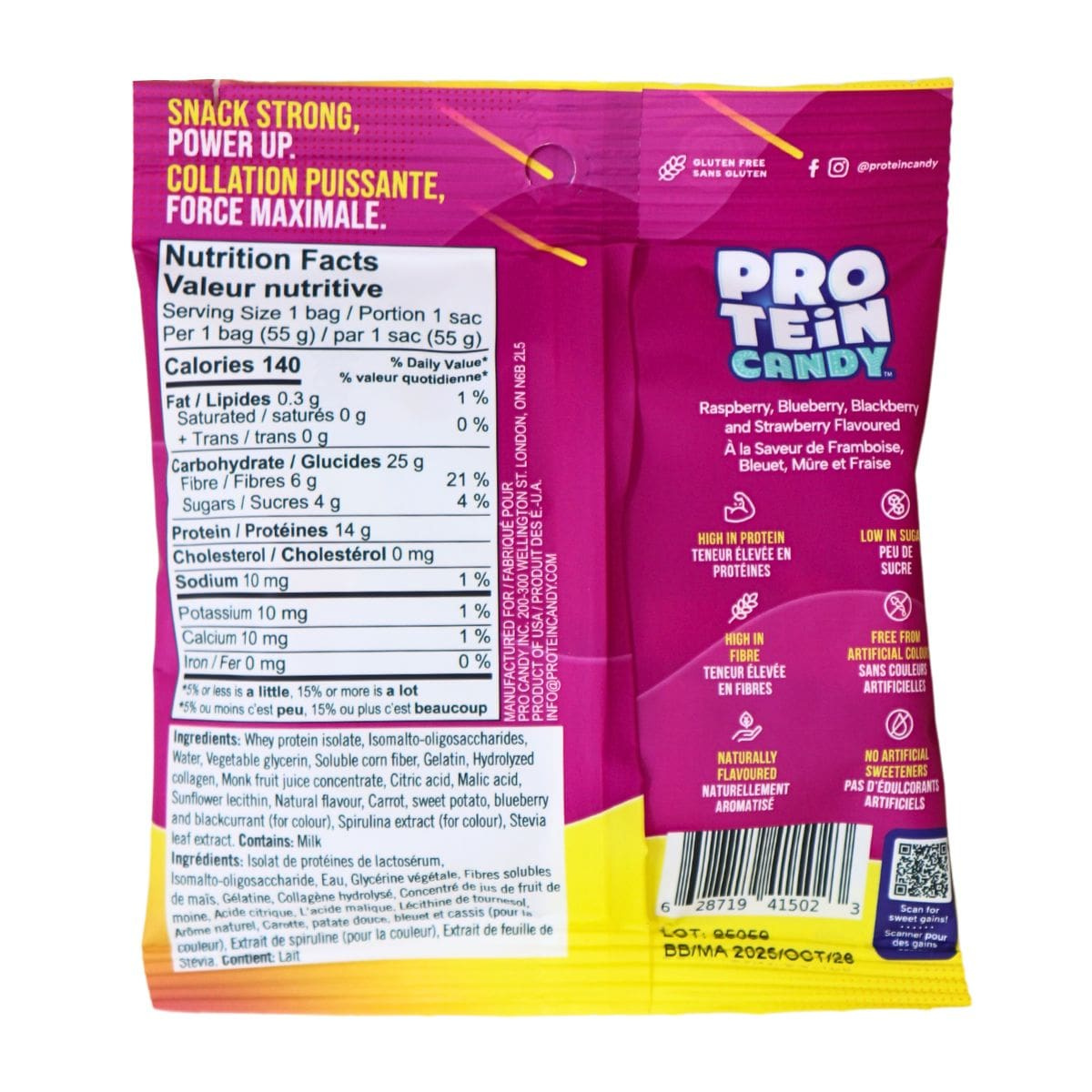 Step into the ring with Protein Candy’s Berry Punch, the knockout snack that’s about to give your taste buds a one-two combo! Made with whey protein and collagen, and sweetened with monk fruit juice concentrate, Protein Candy is nutritious AND delicious. With 14g of high-quality protein, 6g of prebiotic fibre, and only 4g of sugar, this high-protein, high-fibre, low-sugar candy is throwing down some serious nutrition while keeping sugar lightweight. Bursting with juicy berry flavours like blueberries, blackberries, and strawberries, every bite delivers a flavour punch that’ll knock you and your tastebuds out! Are you ready to punch up your candy game?