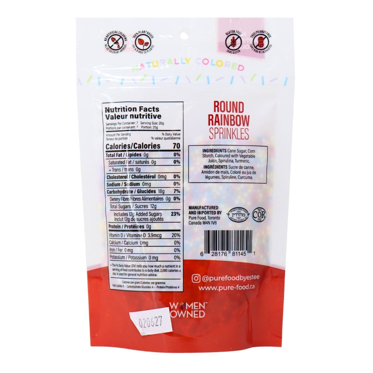 Pure Food by Estee Naturally-Coloured Sprinkles Round Rainbow, 142g