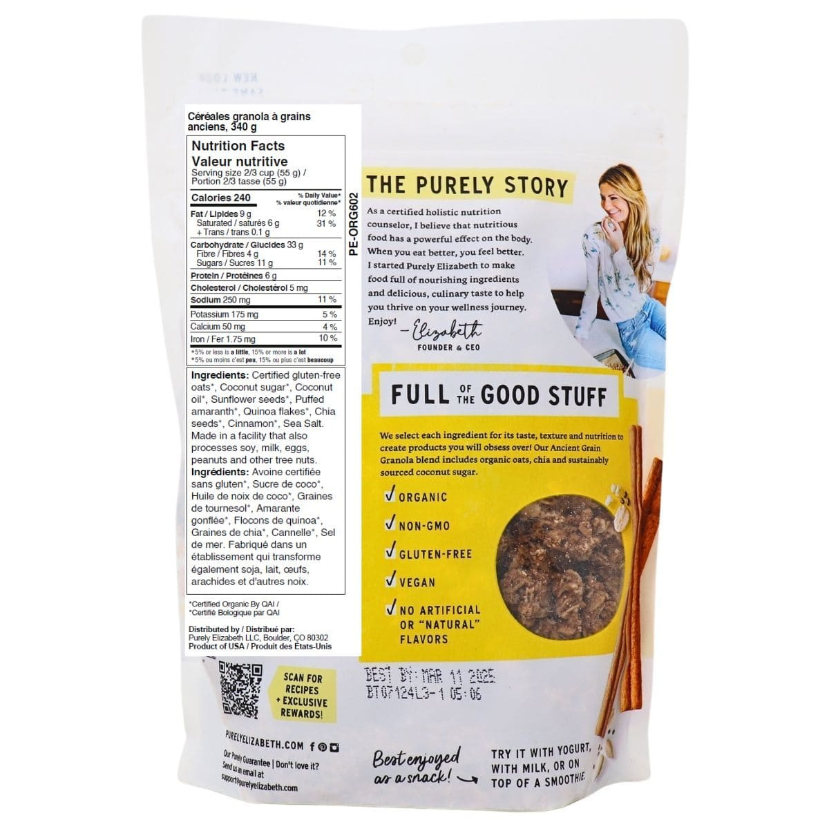 Organic Certified Gluten-Free Oats, Organic Coconut Sugar, Organic Coconut Oil, Organic Sunflower Seeds, Organic Puffed Amaranth, Organic Quinoa Flakes, Organic Chia Seeds, Organic Cinnamon, Sea Salt.