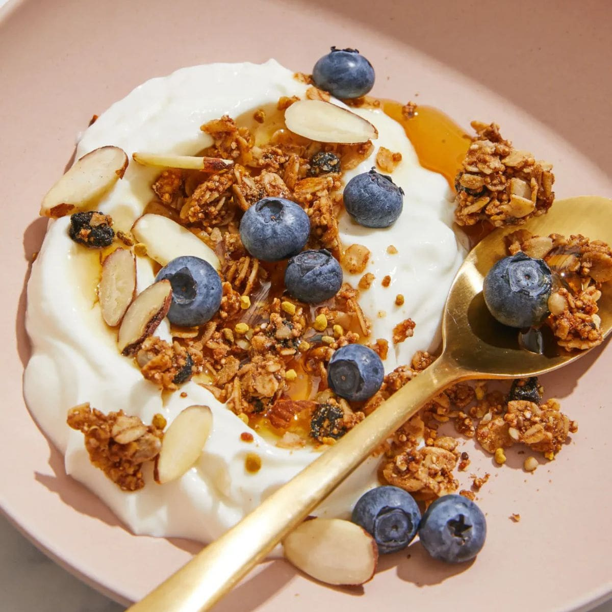 Organic Certified Gluten-Free Oats, Organic Coconut Sugar, Organic Coconut Oil, Dried Blueberries (Blueberries, Cane Sugar, Sunflower Oil), Organic Sunflower Seeds, Organic Puffed Amaranth, Organic Hemp Seeds, Organic Quinoa Flakes, Organic Chia Seeds, Organic Cinnamon, Sea Salt.