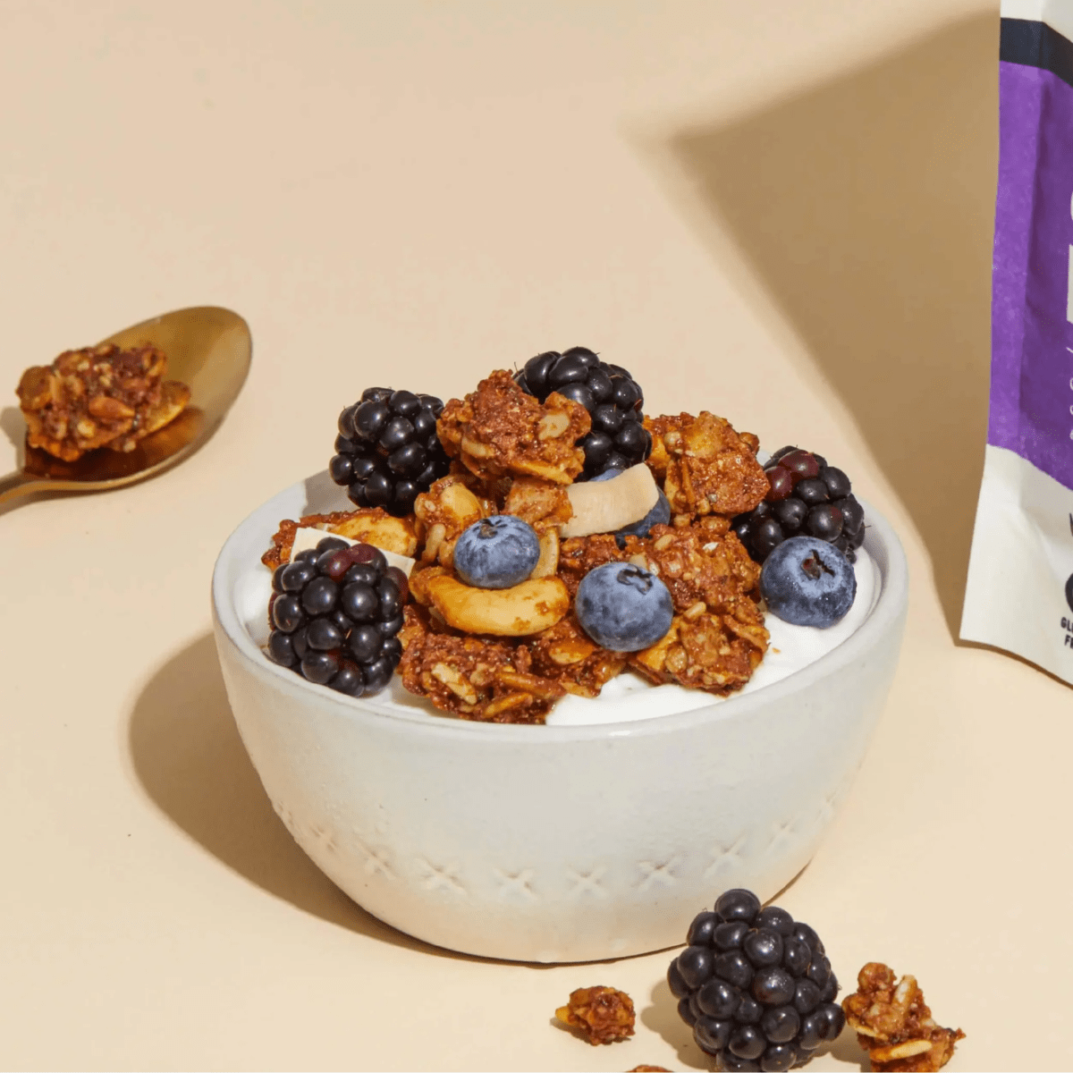 Rich cashews, dried coconut flakes superfood seeds combine with cashew butter and hints of vanilla and sea salt for irresistible clusters — free of the oats and grains! Free of Refined Sugar. Sweetened with Coconut Sugar, a Low-Glycemic Sweetener. Baked with Coconut Oil.