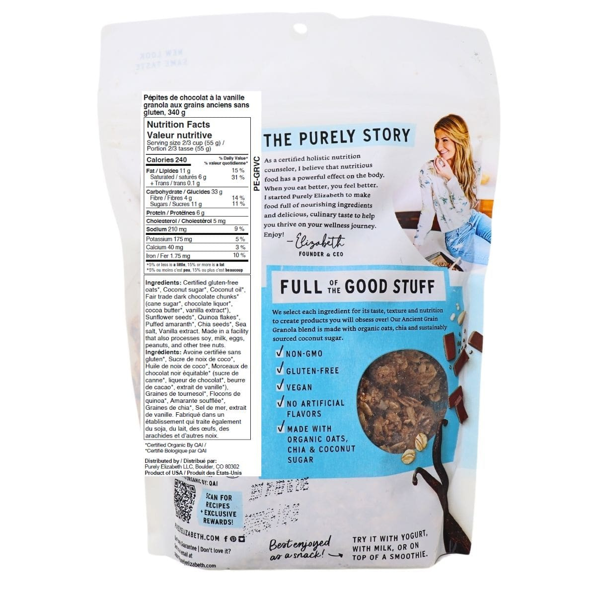 Purely Elizabeth Gluten-Free Ancient Grain Granola Vanilla Chocolate Chip, 340g
