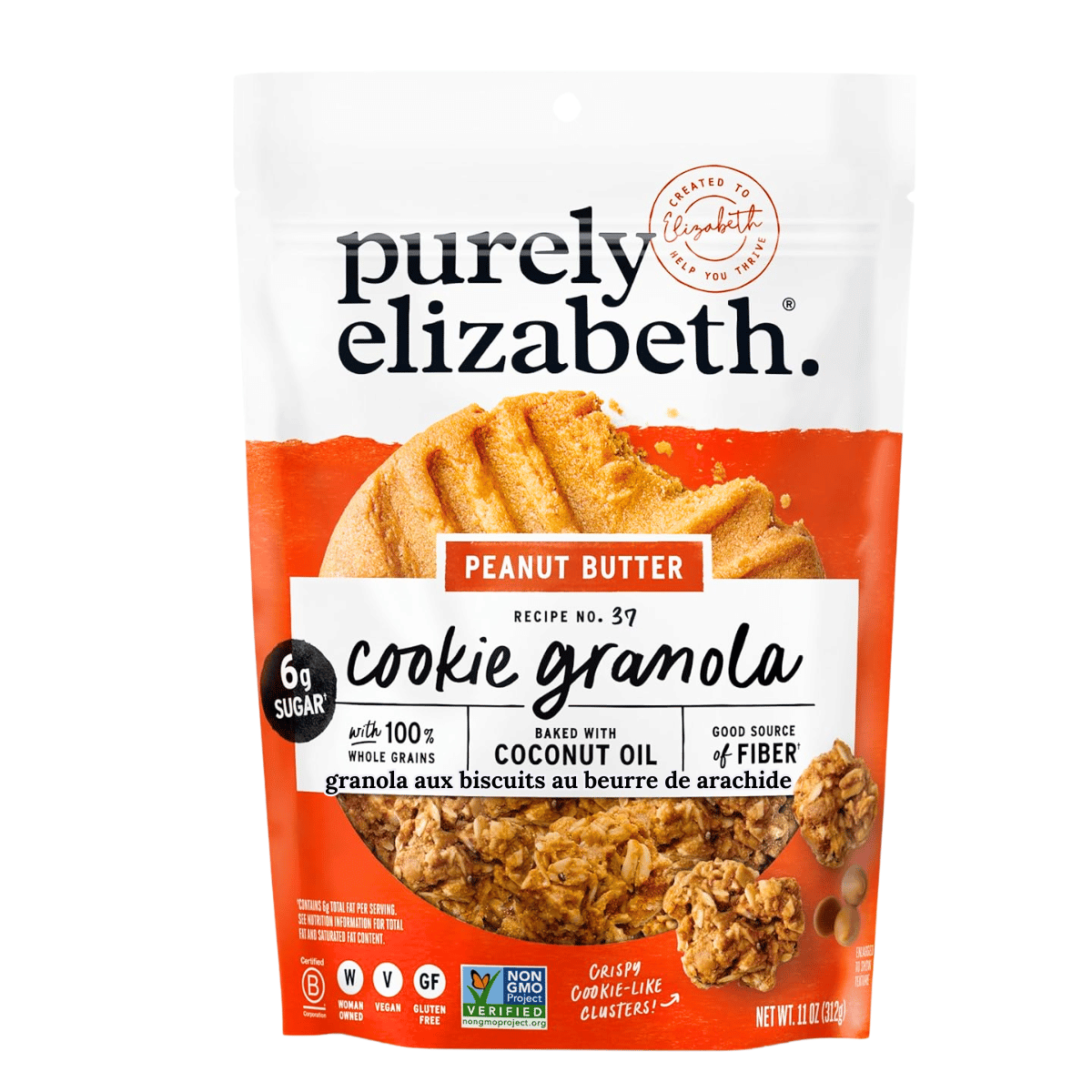 Peanut butter cookie meets crunchy granola? Yes please! Purely Elizabeth Gluten-Free Cookie Granola Peanut Butter brings the flavor of your favorite sweet treat into crispy, cookie-like clusters. And it's made with 100% whole grains and just 6g of sugar. It’s a snackable, munchable, downright irresistible blend of nutty richness and wholesome goodness. Basically, the best of both bite-sized worlds!