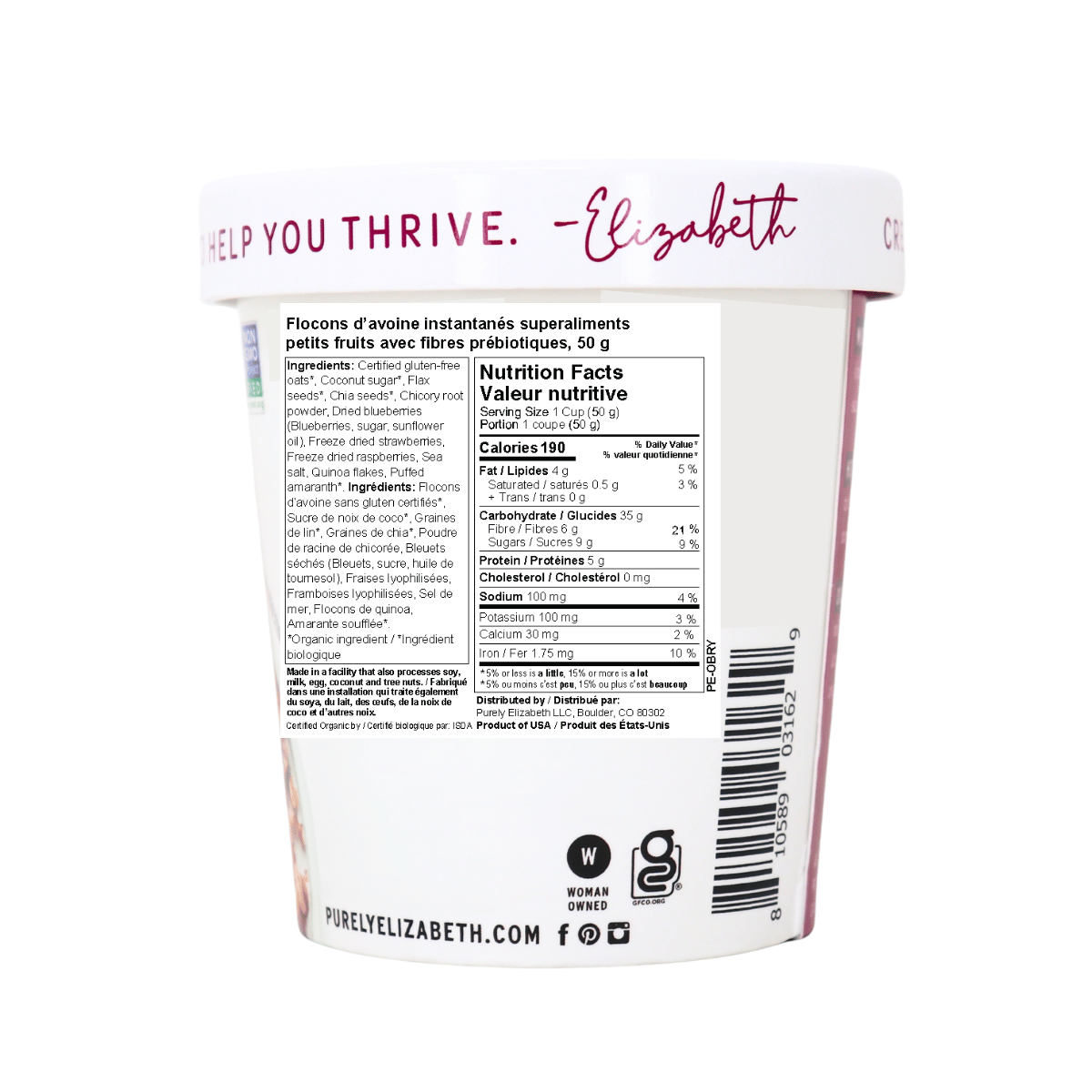 Purely Elizabeth Gluten-Free Instant Superfood Oatmeal Cup Mixed Berry with Prebiotic Fiber, 50 g