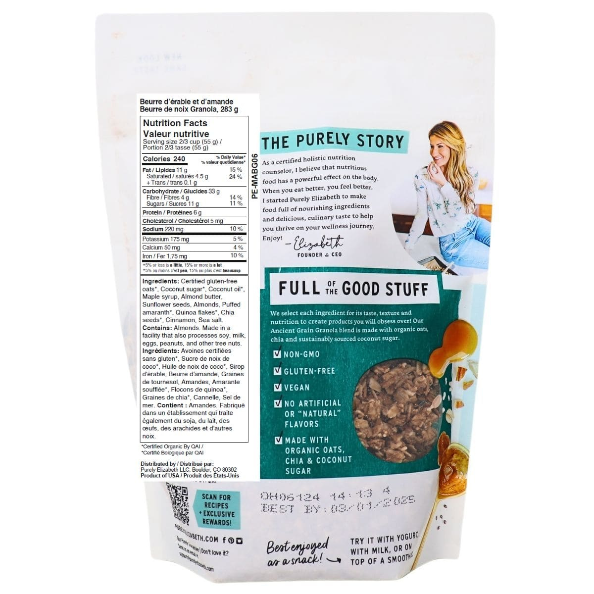 Organic Certified Gluten-Free Oats, Organic Coconut Sugar, Organic Coconut Oil, Maple Syrup, Almond Butter, Sunflower Seeds, Almonds, Organic Puffed Amaranth, Organic Quinoa Flakes, Organic Chia Seeds, Cinnamon, Sea Salt.