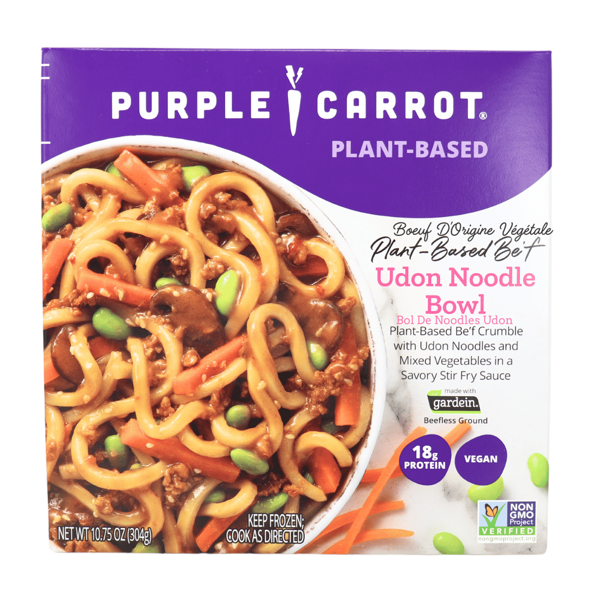 Udon't want to miss out on Purple Carrot's plant-based beef udon noodle stir fry! With tender udon noodles, a medley of vibrant mixed vegetables and perfectly savoury Be'f crumbles (crafted with Gardein® Beefless Ground), it's an easy frozen vegan meal that actually delivers on flavour. Packed with 18g of plant-based protein and 6g of fibre, every slurp proves that Purple Carrot is stirring things up. It’s quick, it’s easy, and it’s ridiculously delicious. Skip the takeout and enjoy a vegan udon...just one bite, and you'll be wondering what have 'udon' without it!