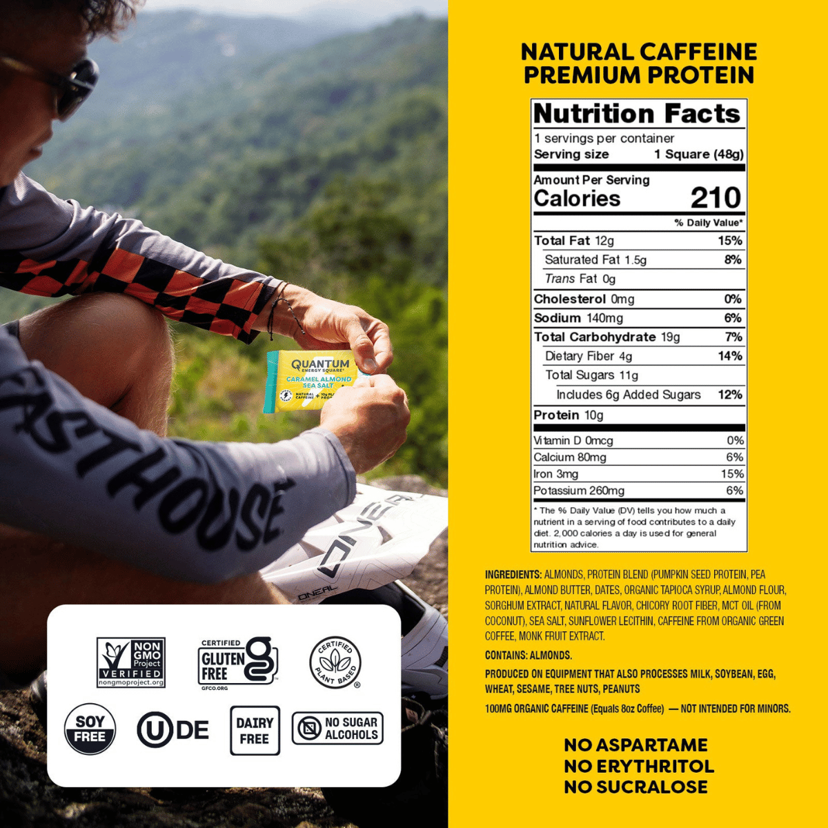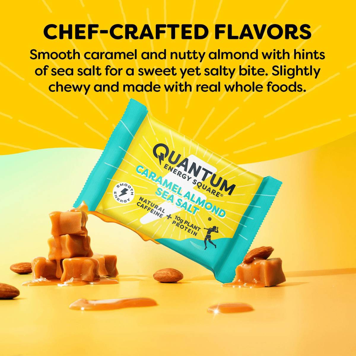 Quantum Energy Squares Caffeinated Protein Bar Caramel Almond Sea Salt 8-Pack, 45 g each
