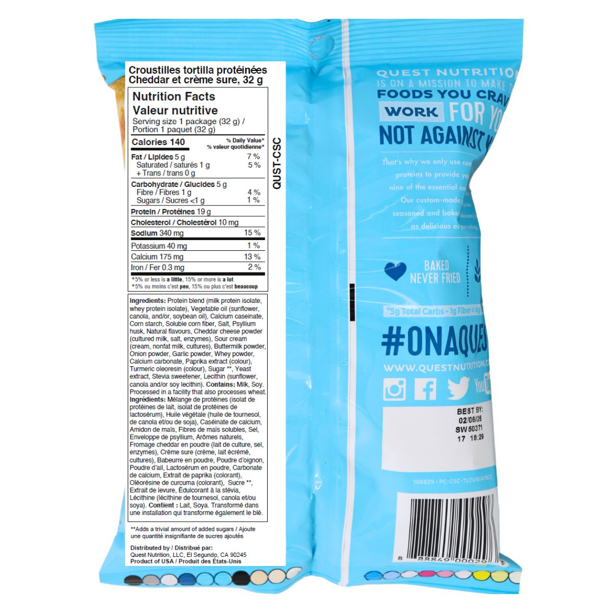 Protein Blend (Milk Protein Isolate, Whey Protein Isolate), Vegetable Oil (Sunflower, Canola, and/or, Soybean Oil), Calcium Caseinate, Corn Starch, Soluble Corn Fiber, Salt, Psyllium Husk. Contains less than 2% of the following: Natural Flavours, Cheddar Cheese Powder (Cultured Milk, Salt, Enzymes), Sour Cream (Cream, Nonfat Milk, Cultures), Buttermilk Powder, Onion Powder, Garlic Powder, Whey Powder, Calcium Carbonate, Paprika Extract (Colour), Turmeric Oleoresin (Colour), Sugar **, Yeast Extract, Stevia Sweetener, Lecithin (Sunflower, Canola and/or Soy Lecithin).