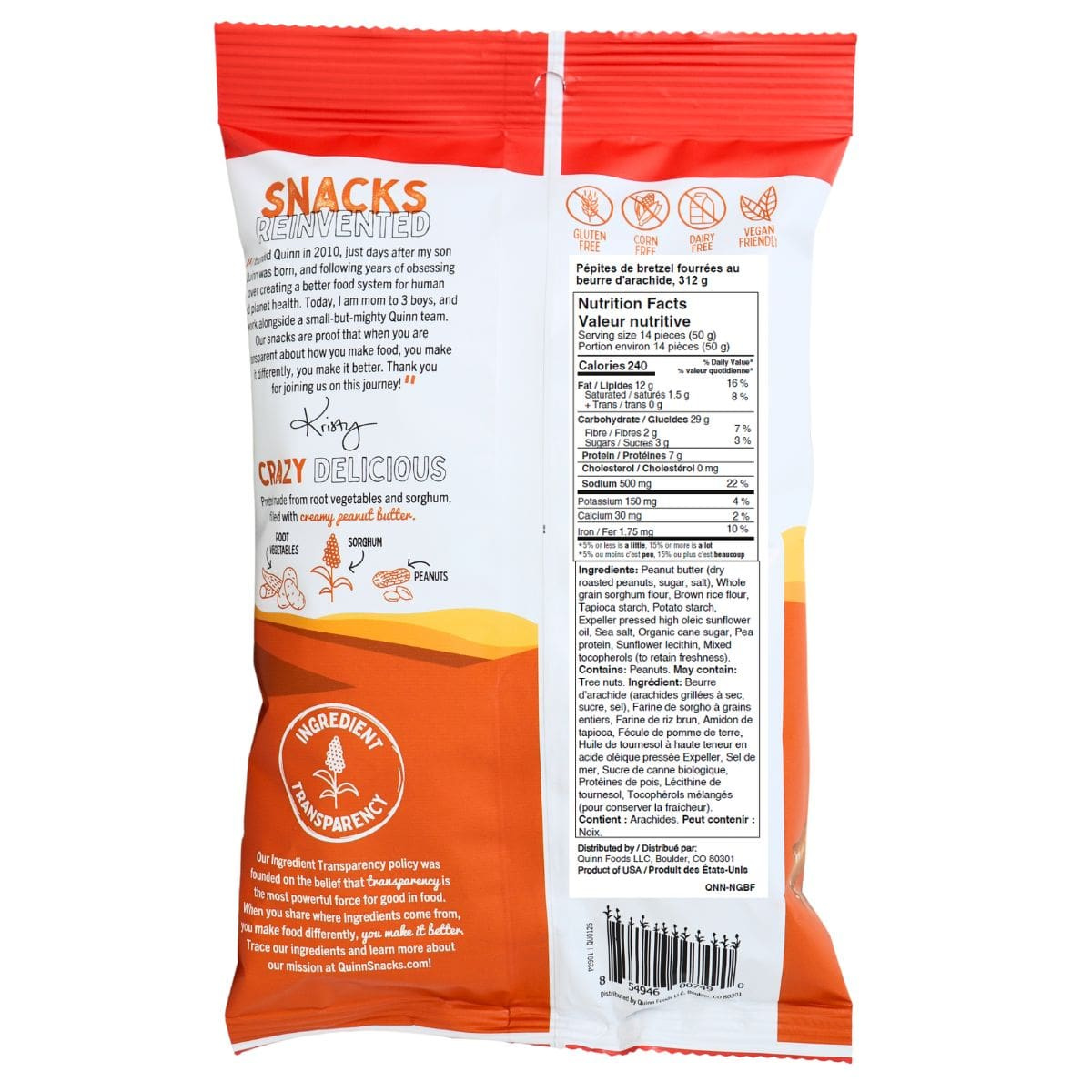 Quinn’s Peanut Butter Filled Pretzel Nuggets just got an upgrade, and it’s big. Now available in a family-sized bag, these gluten-free pretzel bites are here to satisfy the whole crew! With a creamy peanut butter filling and a crunchy pretzel shell, these peanut butter pretzels are sweet yet salty, and crunchy yet creamy, all while being gluten-free, dairy-free, and corn-free, it’s a snack that everyone can enjoy! With more nuggets, more feel-good snacking, and definitely way more smiles in Quinn’s family-sized bag, it’s time to go big or go home (with a bag of Quinn’s, of course)!