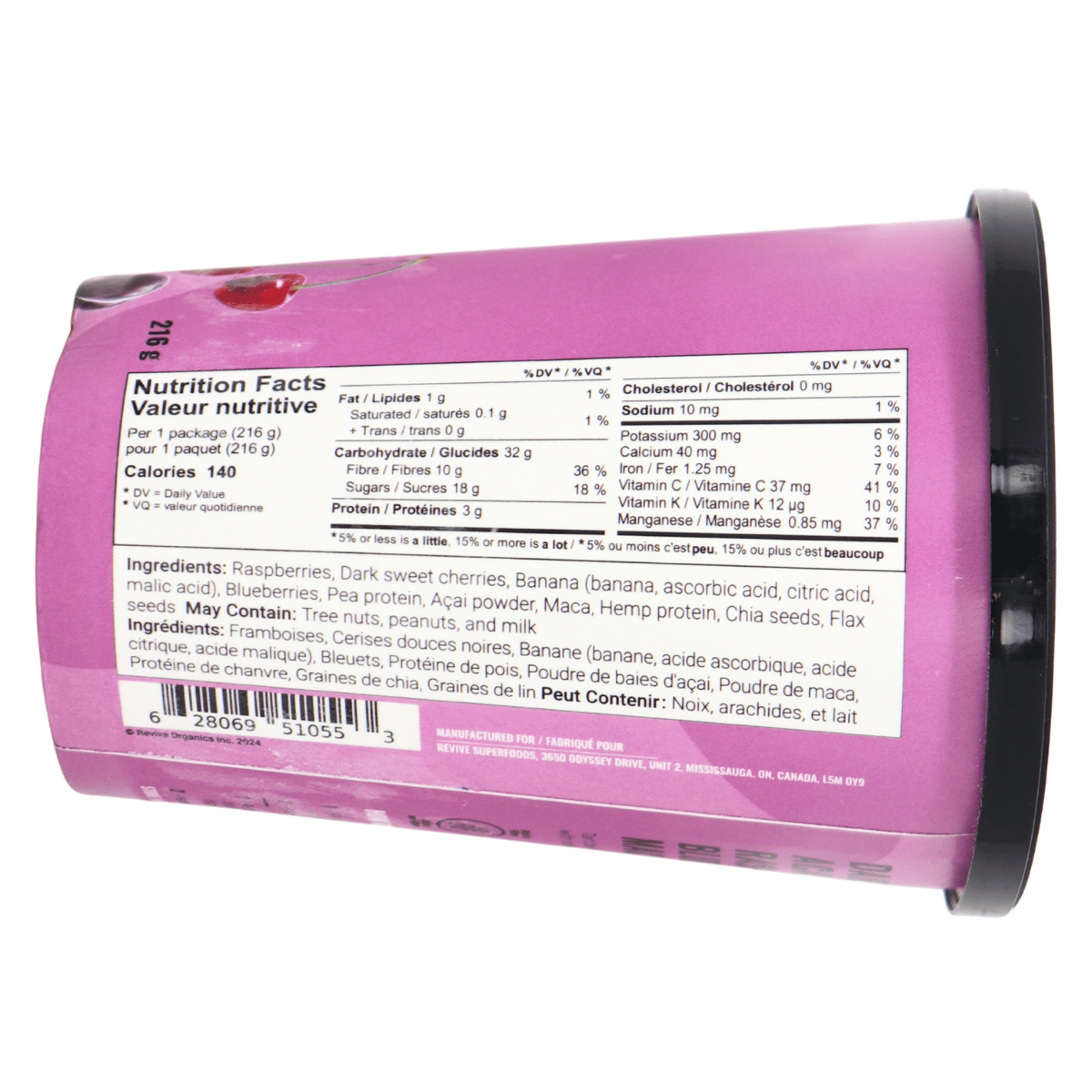 This is your answer when you want something vibrant, filling and clean. Revive Superfoods Cherry & Açaí is a frozen superfood smoothie that makes it easy to get more plant-based energy into your day while keeping the prep simple.