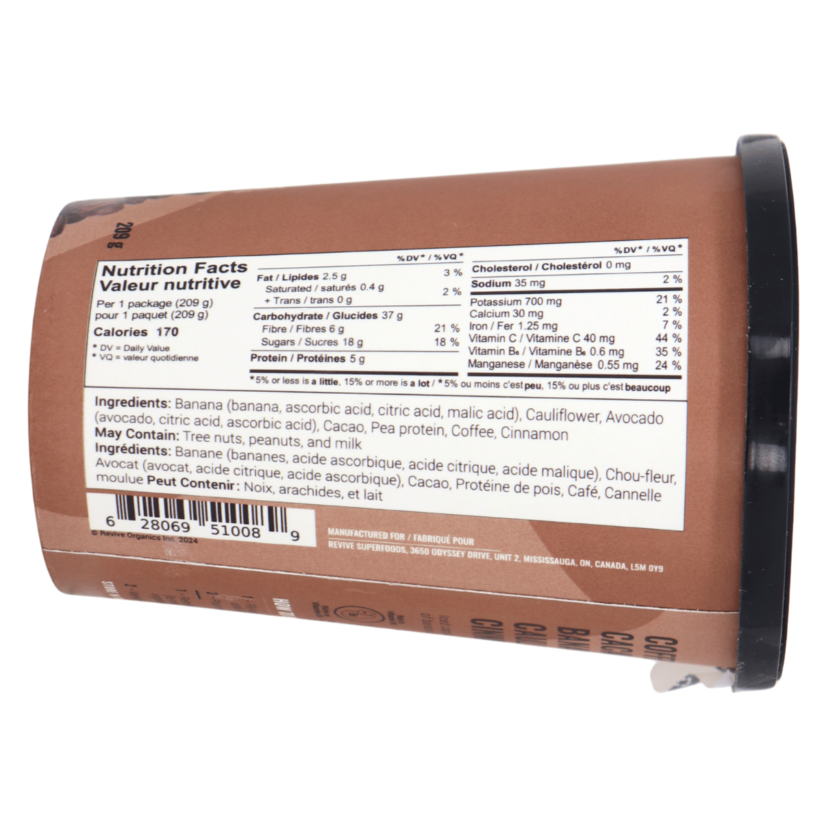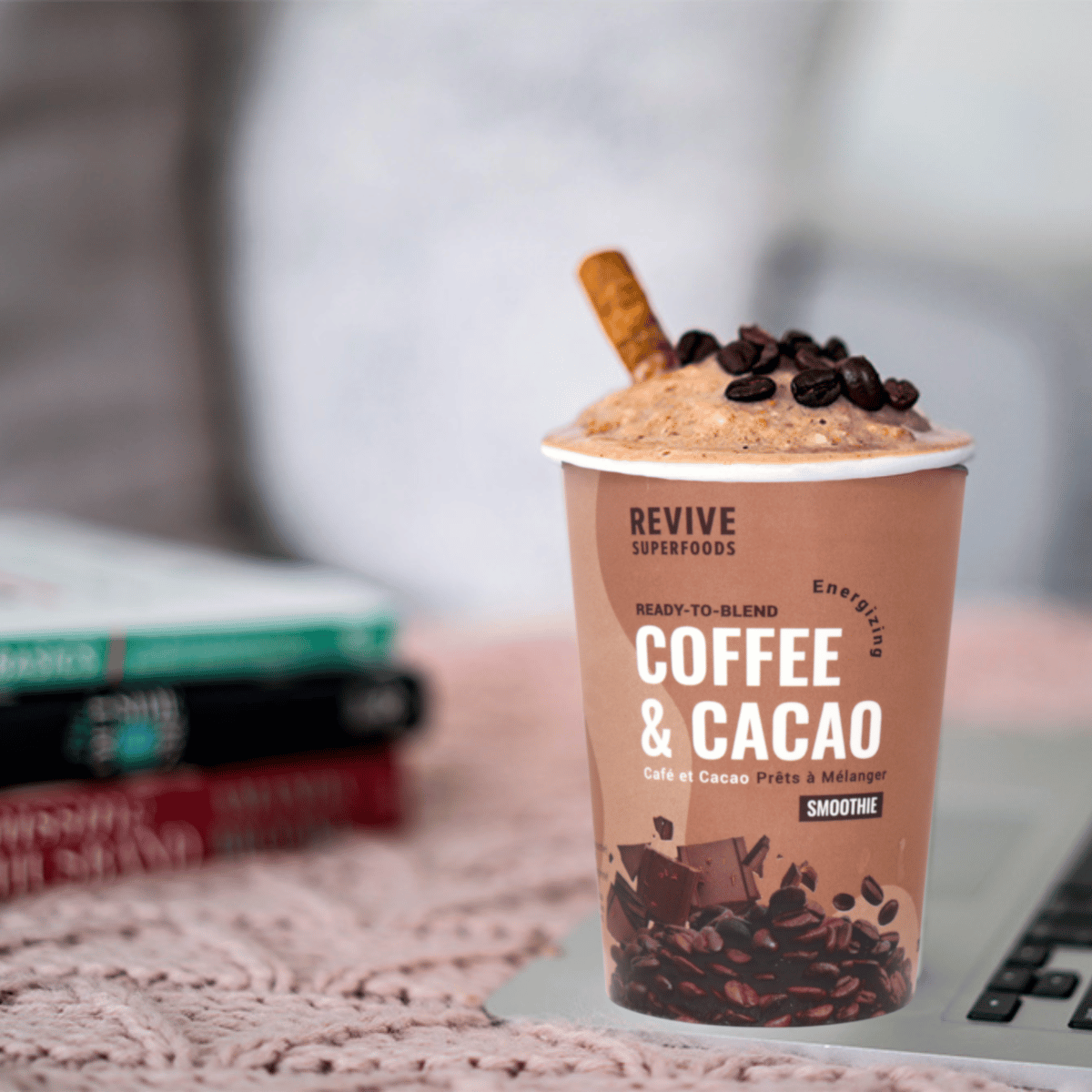 Your coffee break just got an upgrade. Revive Superfoods Coffee & Cacao blends banana, cacao and real coffee with antioxidant-rich greens and plant-based protein for a mocha-inspired smoothie that gives you energy and flavour in one.