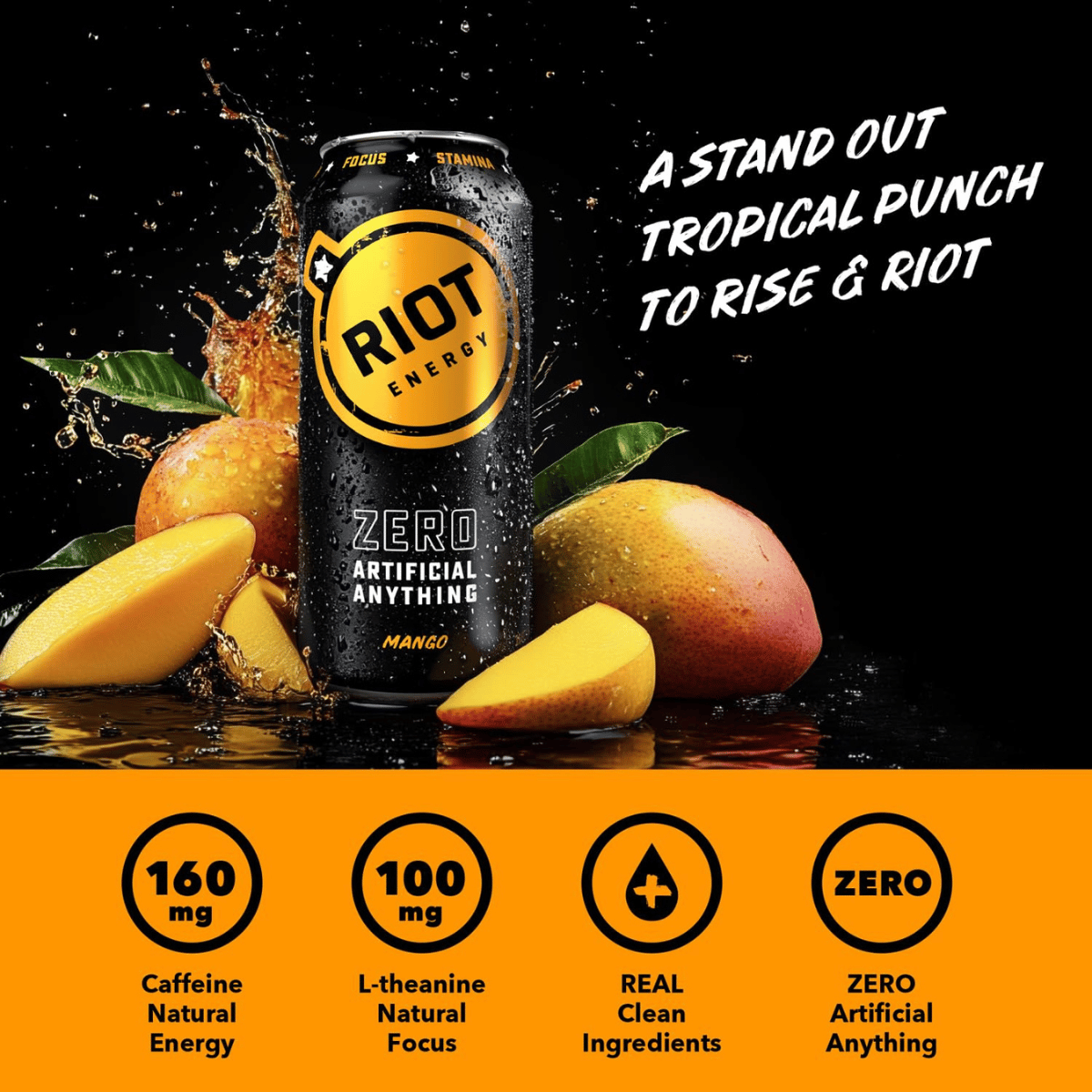 No refined sugar, no artificial extras, just organic fuel that feels as good as it tastes. RIOT Energy Mango shows how real fruit juice and clean caffeine can make energy taste better, brighter, and more natural.