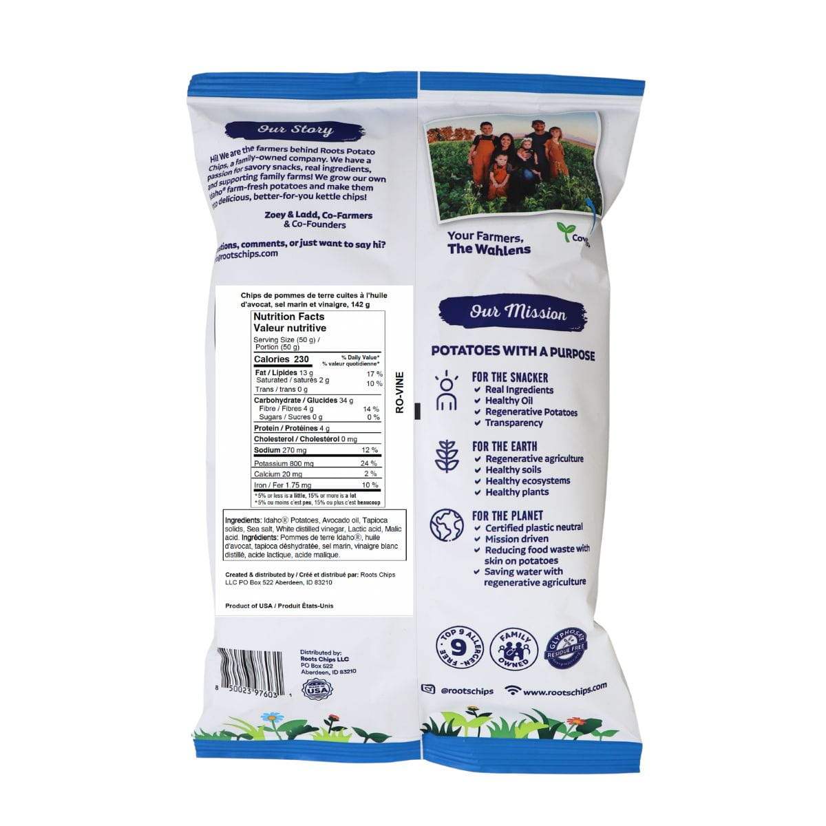 IdahoⓇ Potatoes, Avocado oil, Tapioca solids, Sea salt, White distilled vinegar, Lactic acid, Malic acid.