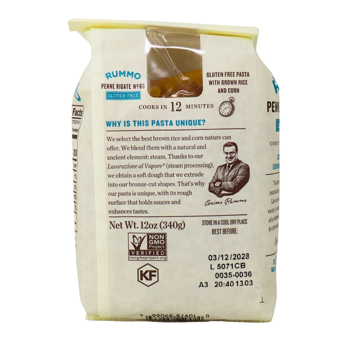Say hello to pasta night made simple (and gluten-free)! Rummo Gluten-Free Penne Rigate No. 66 offers the perfect bite and authentic Italian taste, without the wheat. Crafted from a blend of high-quality gluten-free grains, this pasta cooks up firm and tender, ideal for holding your favourite sauces, from creamy Alfredo to classic marinara.