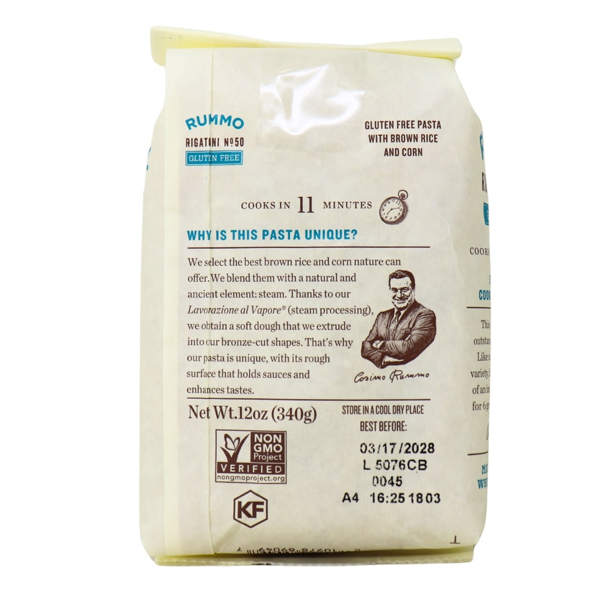 Bring true Italian comfort to your kitchen with Rummo Gluten-Free Rigatoni No. 50,  a pasta crafted for those who won’t compromise on taste or texture. Made from a blend of brown rice, corn, and potato, this gluten-free pasta delivers that signature al dente bite Rummo is famous for. Its ridged tubes are perfect for catching every drop of rich tomato sauce, creamy Alfredo, or hearty ragu.Â