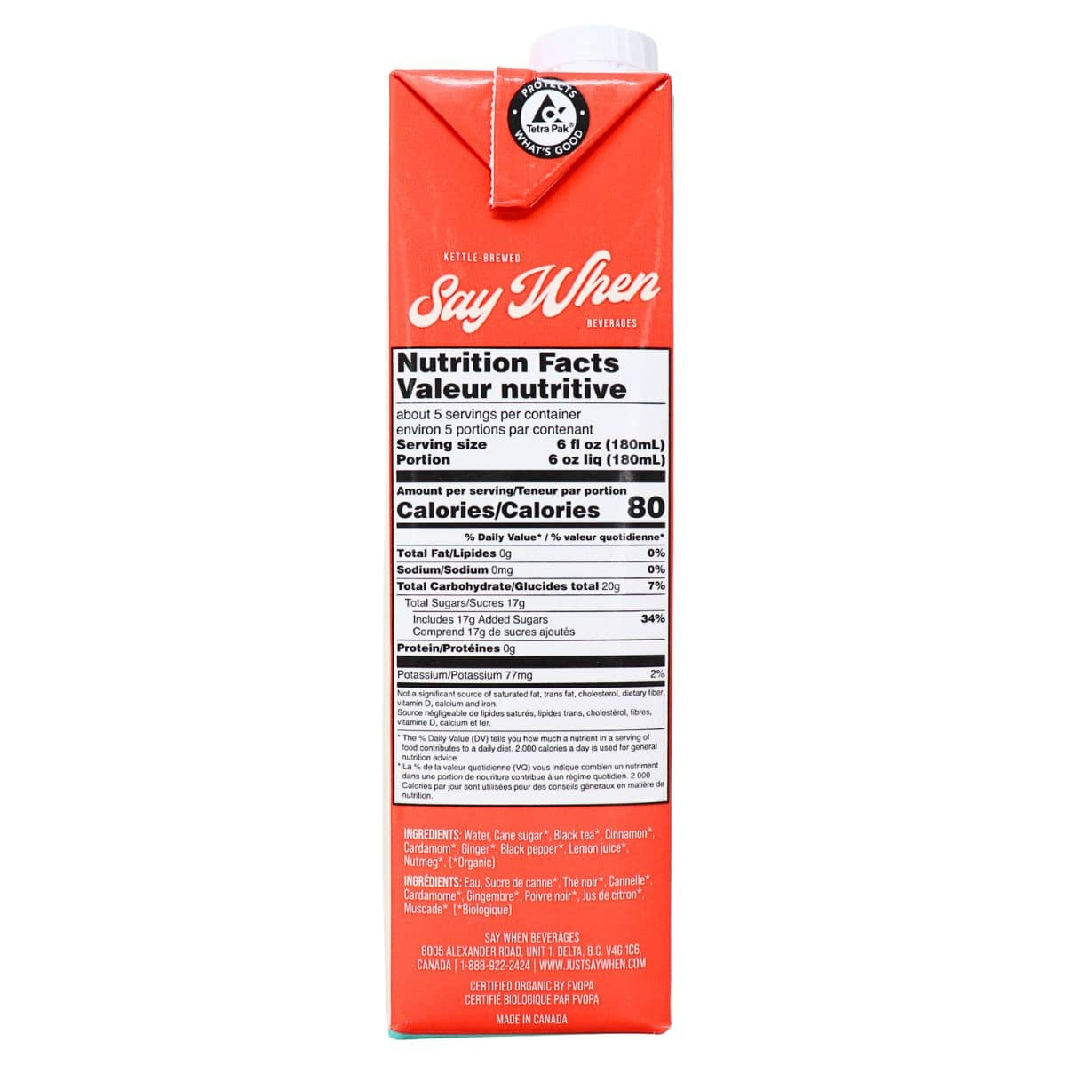 Say When is comin’ in hot! This isn’t your average chai concentrate—it’s a bold blend of premium, organic, kettle-brewed black tea that brings the heat and heart to every cup. With a kick so fierce, you might need a fan, this feisty chai tea concentrate is spiced to perfection with a fiery blend of cinnamon, cardamom, ginger, black pepper, and nutmeg—each one daring you to take a sip and igniting your senses. With a convenient 1:1 concentration ratio, whipping up your favourite chai latte has never been easier. Just Say When, and we’ll bring the spice(d chai)!