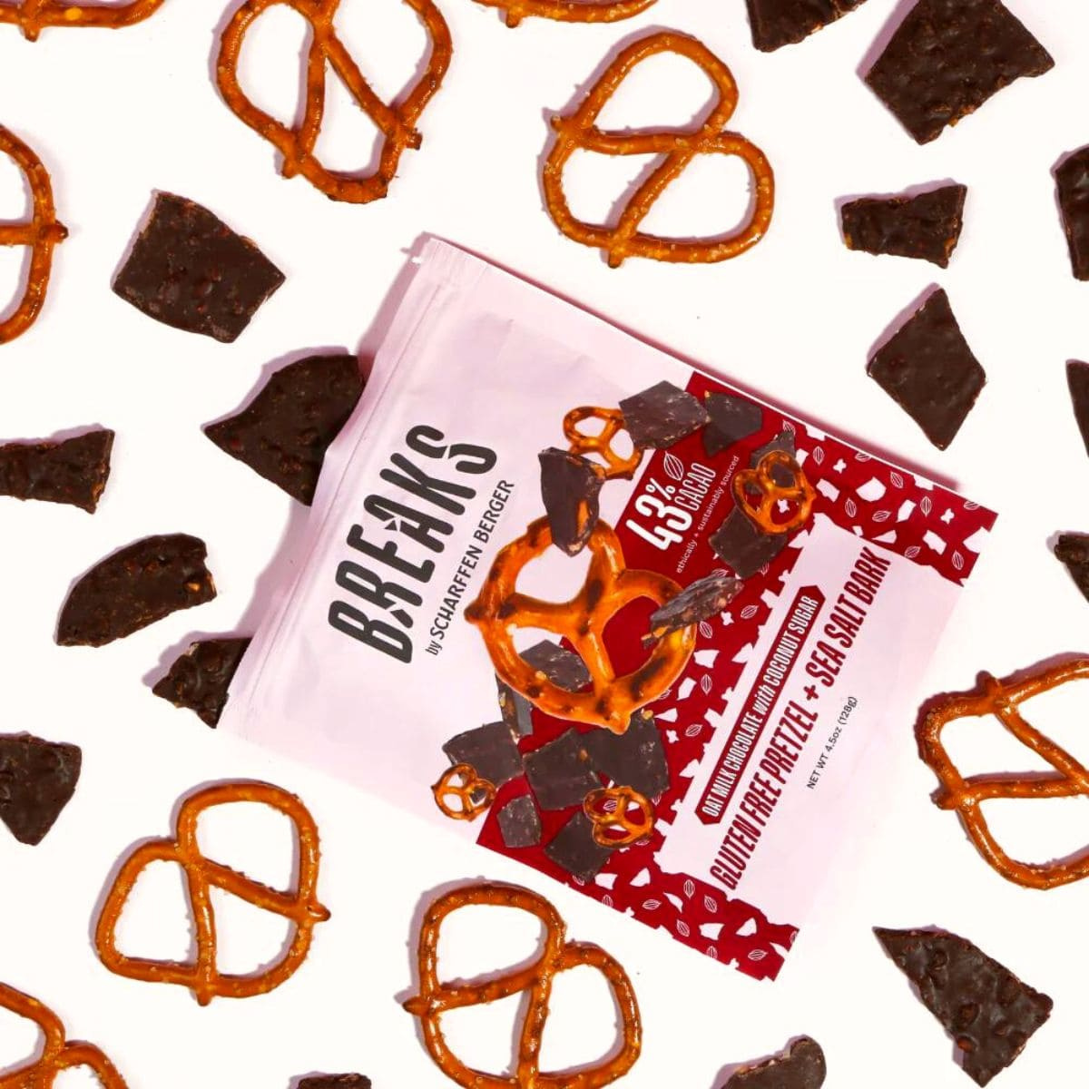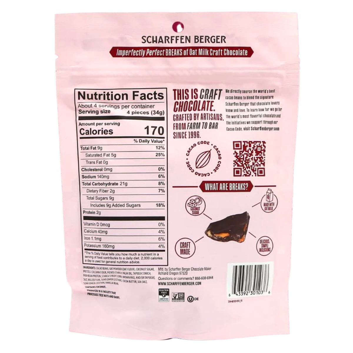 BREAK free from the mundane with Scharffen Berger’s oat milk chocolate bark! Irresistibly rich and luxuriously creamy, every bite is packed with deliciously crunchy gluten-free pretzels! All sweetened with unrefined coconut sugar and a touch of sea salt. Sweet and salty, crunchy and creamy, all rolled into one delicious vegan pretzel chocolate bark. It’s the (Scharffen Berger) BREAK you deserve!