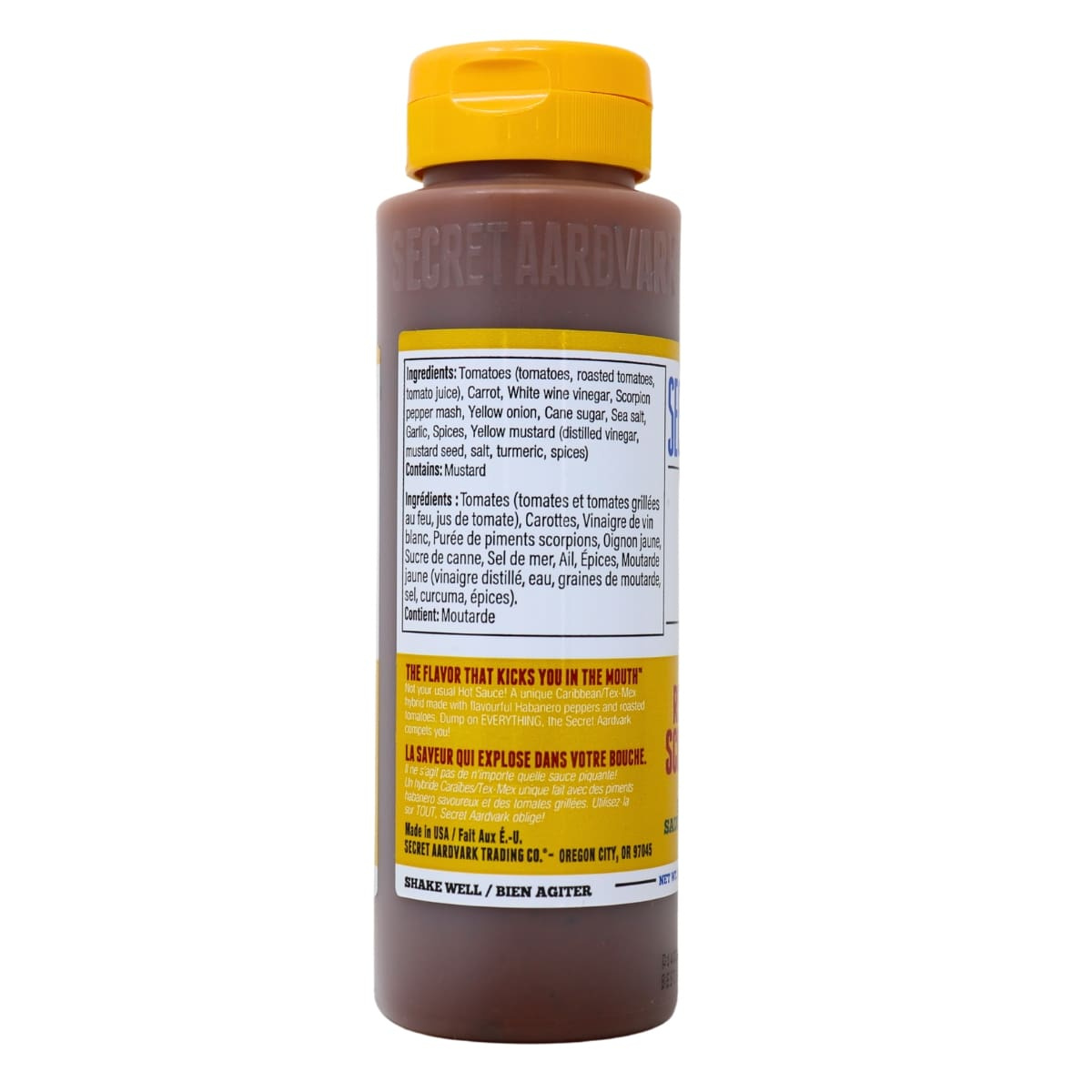 Tomatoes (Tomatoes, Roasted tomatoes, Tomato juice), Carrot, White wine vinegar, Scorpion pepper mash, Yellow onion, Cane sugar, Sea salt, Garlic, Spices, Yellow mustard (Distilled vinegar, Mustard seed, Salt, Turmeric, Spices)