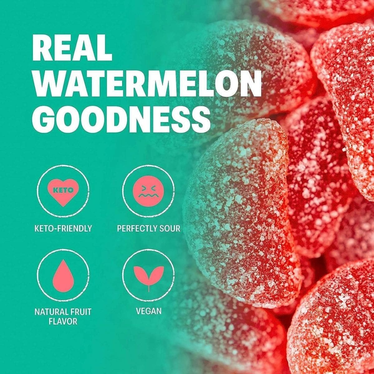 Wassup Watermelon - Polydextrose, Soluble corn fibre, Erythritol, Pectin, Glycerin, Malic acid, Citric acid, Sodium citrate, Natural watermelon flavour, Purple carrot juice concentrate (for colour), Isomalt, Sucralose