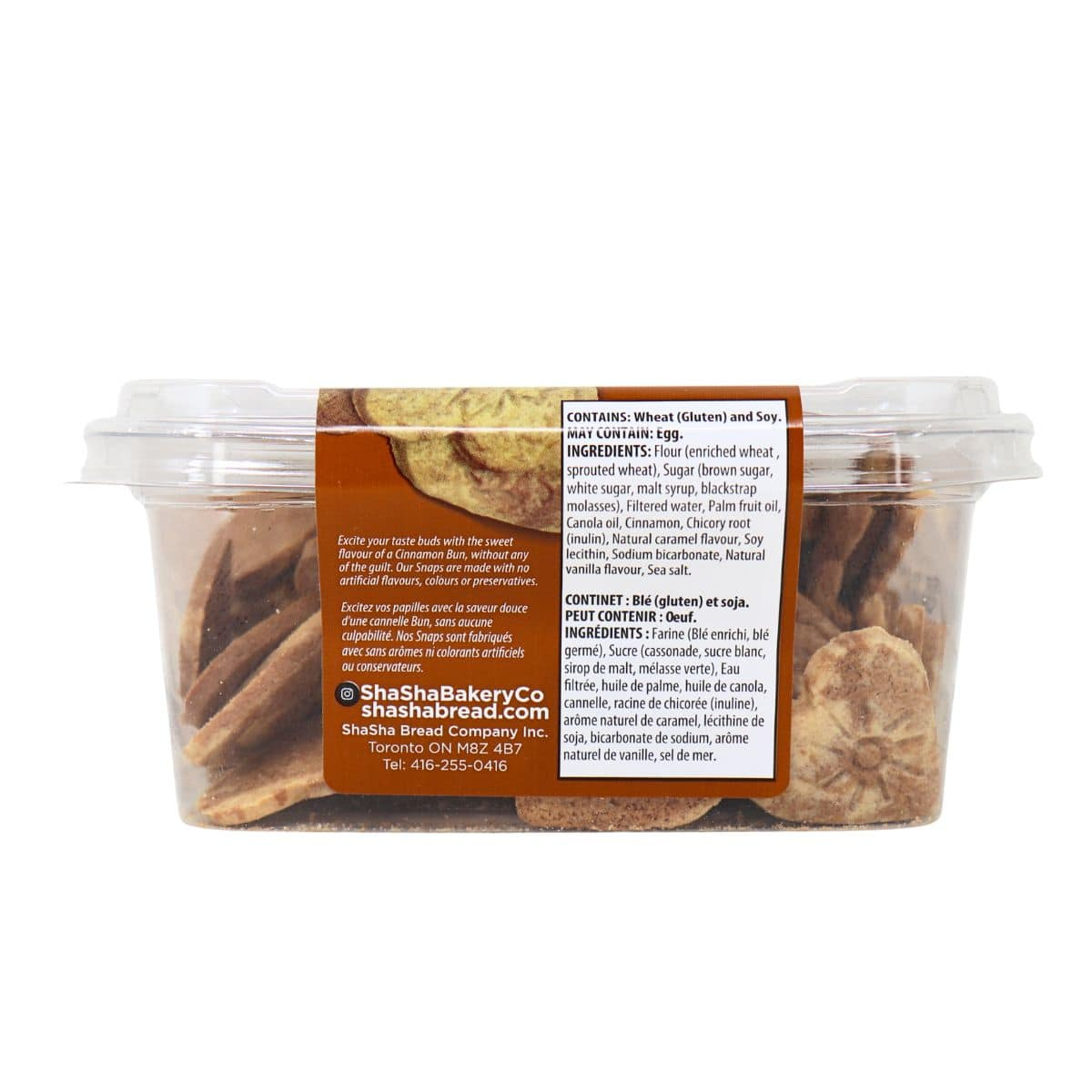 Flour (Enriched Wheat, Sprouted Wheat), Sugar (Brown Sugar, White Sugar, Malt Syrup, Blackstrap Molasses), Filtered Water, Palm Fruit Oil, Canola Oil, Cinnamon, Chicory Root (Inulin), Natural Caramel Flavour, Soy Lecithin, Sodium Bicarbonate, Natural Vanilla Flavour, Sea Salt