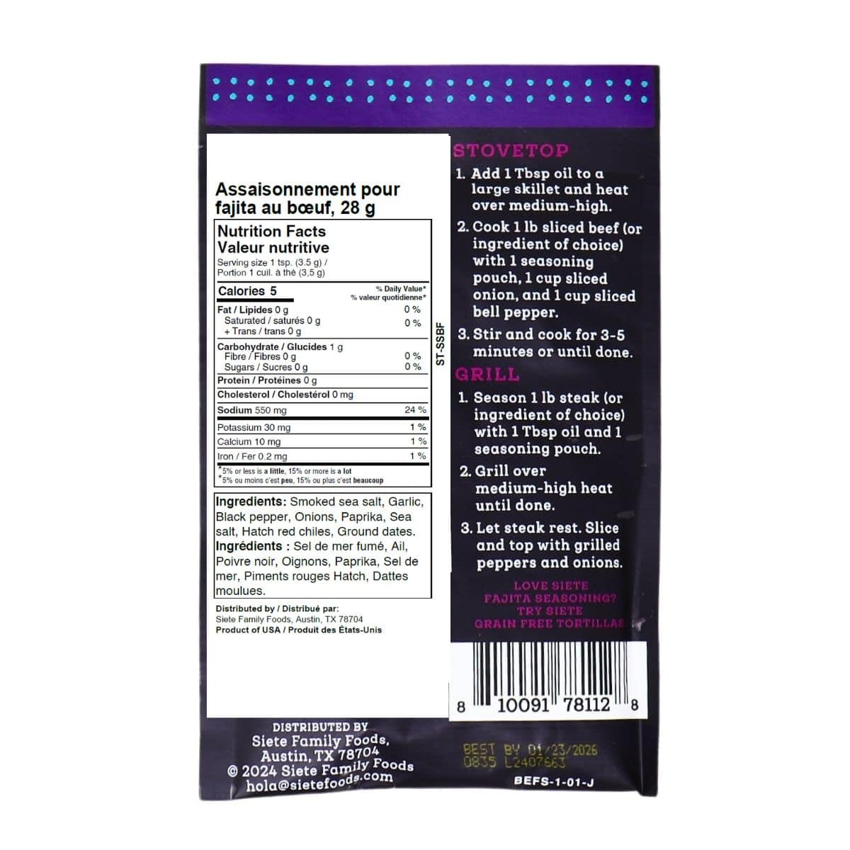 Siete Beef Fajita Seasoning, 28g