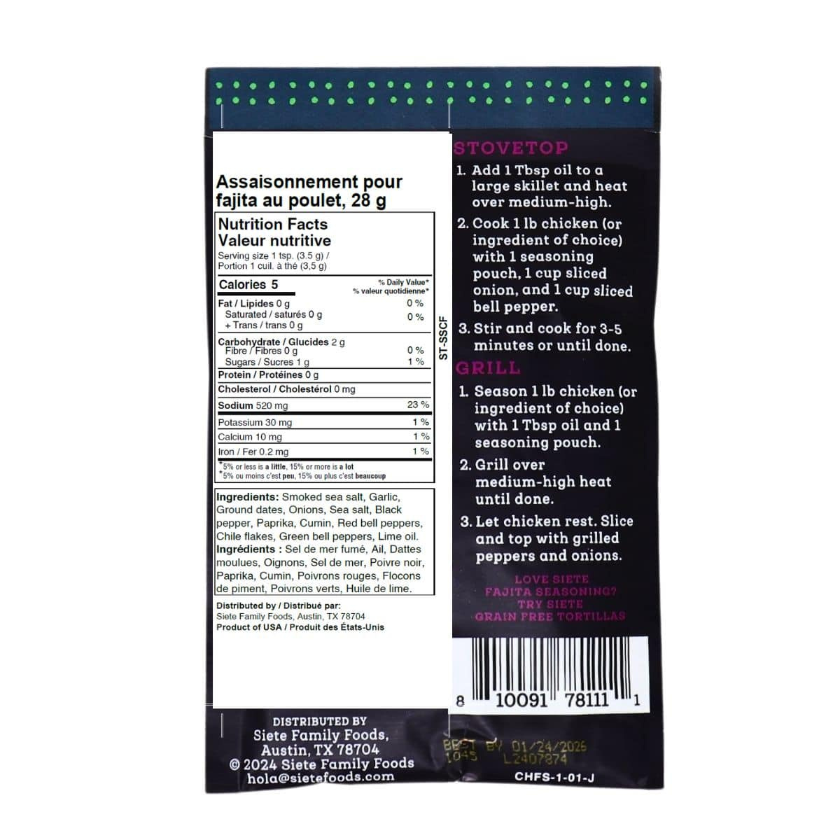 Let your skillet become the stage for Siete’s chicken fajita seasoning–the star performer, delivering a sizzling symphony of authentic smoky goodness. Every sprinkle of this fajita spice mix bursts with the bold flavours of a star-studded lineup of ingredients. The first act brings in smoked sea salt, and cumin, accompanied by fiery chili flakes. And when that settles down, cue the subtle sweetness of red and green bell peppers and ground dates to tie it all together in perfect harmony–it’s like a well-tuned mariachi band, hitting all the right notes! And with no added sugar, Siete’s fajita seasoning isn’t just bringing the heat, they’re bringing the whole enchilada–or should we say fajita!