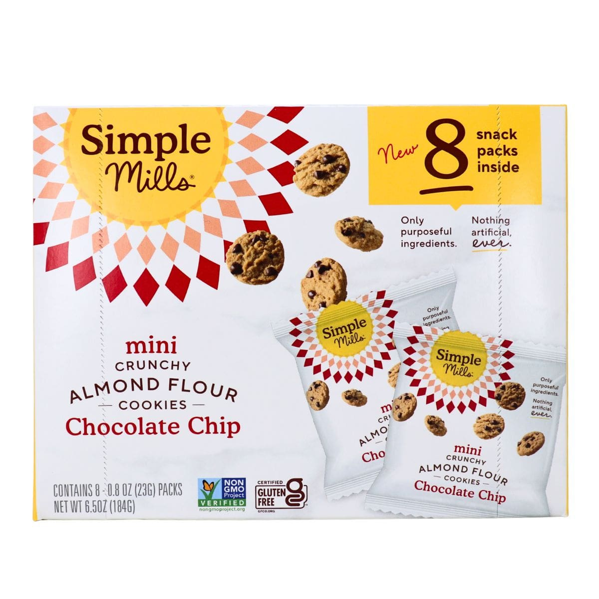 Big cookie flavour, bite-size fun. Simple Mills Mini Grain-Free Crunchy Almond Flour Cookies Chocolate Chip are everything you love about a classic chocolate chip cookie, crisp, crunchy, and packed with chocolatey goodness. Made with simple, thoughtfully chosen ingredients.