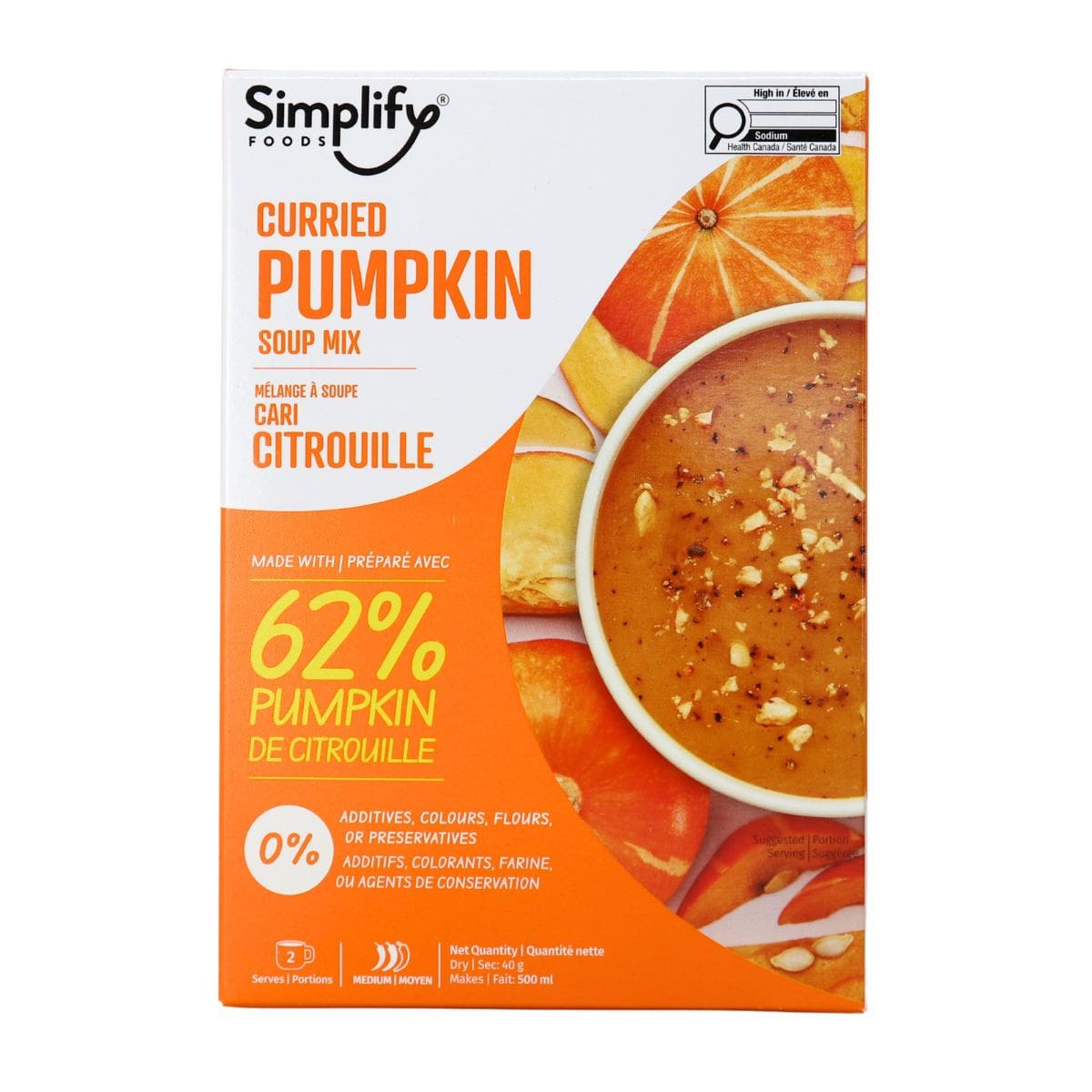 Warming, creamy, and full of spice. Simplify Foods Curried Pumpkin Soup Mix blends real pumpkin with herbs, garlic, and just enough curry spice for a smooth, rich soup that feels like fall in a bowl. No dairy, no preservatives, just full-bodied pumpkin soup flavour.