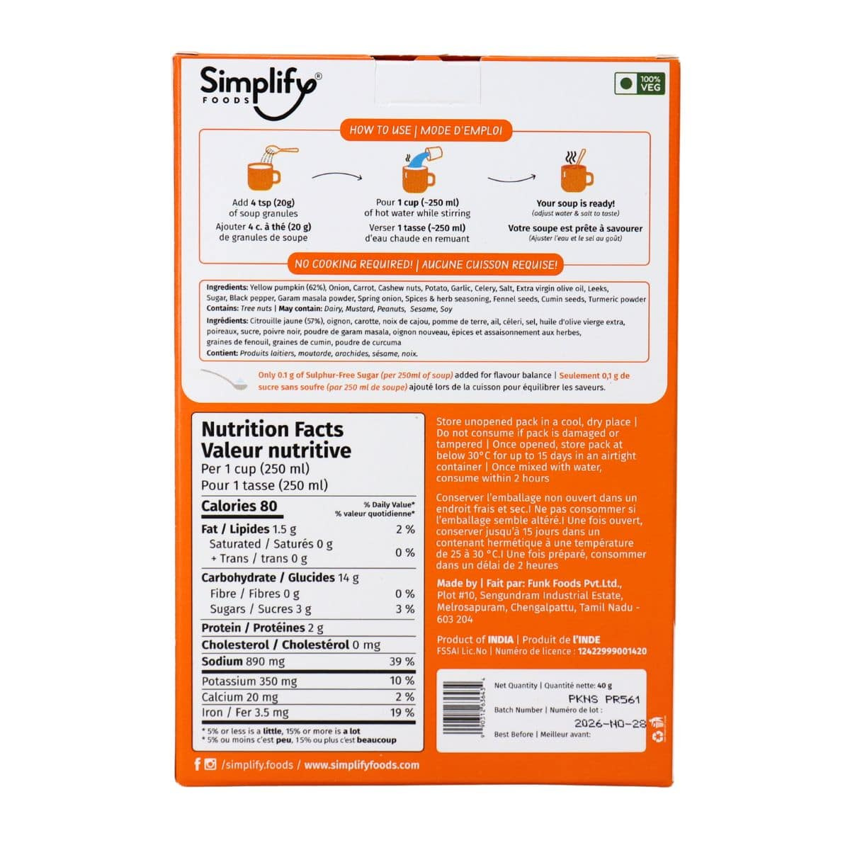 Whether you need a cozy lunch or a simple dinner base, this mix makes clean eating easy. One pouch delivers full flavour without additives, making this Curried Pumpkin Soup from Simplify Foods an effortless comfort classic.