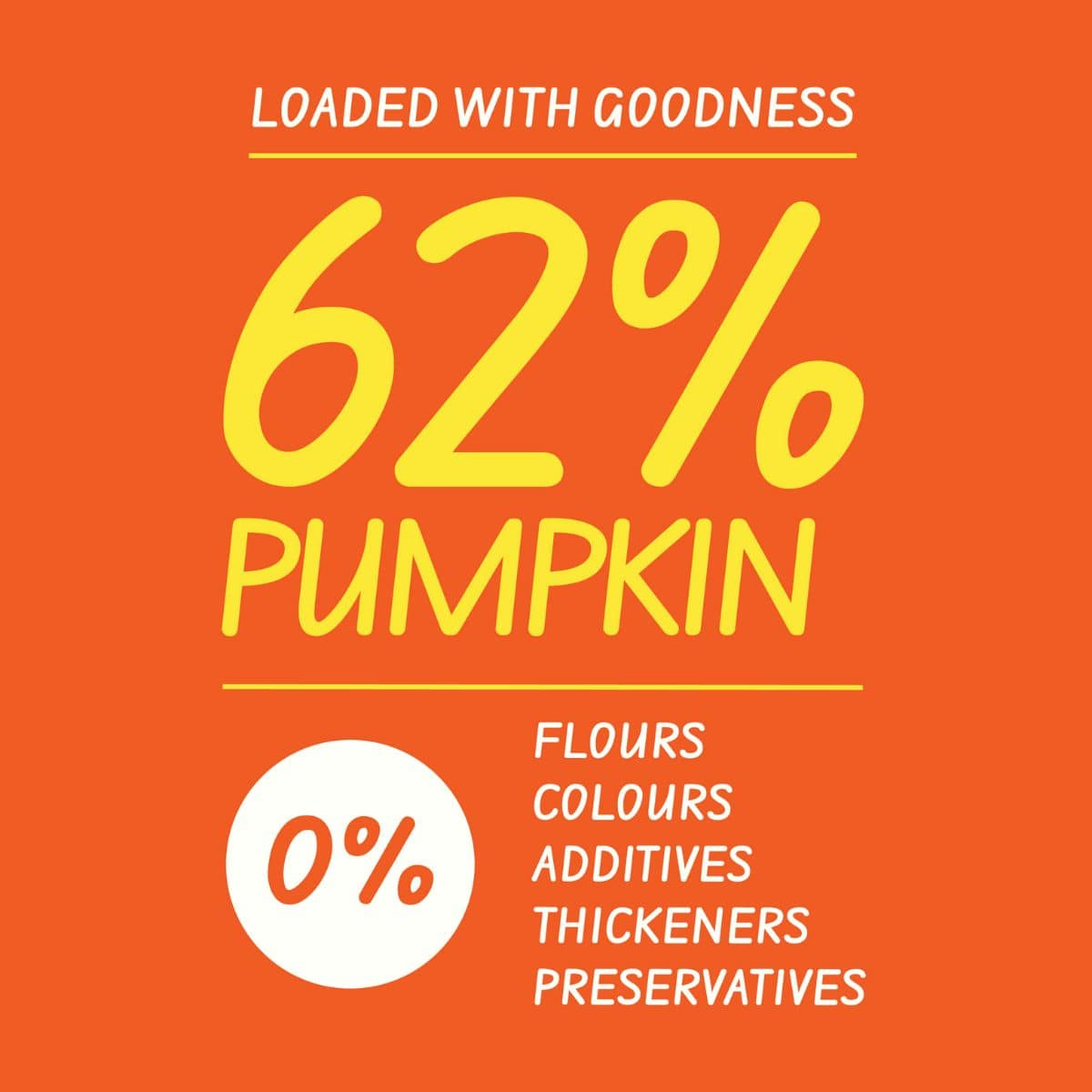 Yellow pumpkin (62%), Onion, Carrot, Cashew nuts, Potato, Garlic, Celery, Salt, Extra virgin olive oil, Leeks, Sugar, Black pepper, Garam masala powder, Spring onion, Spices & herb seasoning, Fennel seeds, Cumin seeds, Turmeric powder.