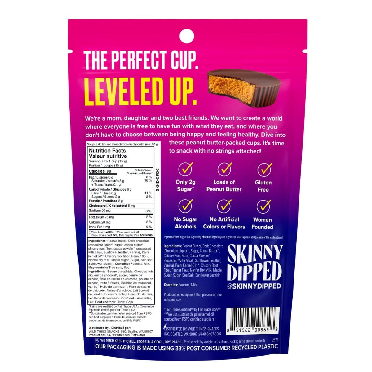 Who says you need a swimsuit to go skinny dipping? Not us! With Skinny Dippedās dark chocolate peanut butter cups, you can go skinny dipping whenever and wherever! Made with simple, premium ingredients and only 2g of sugar in each cup, these low-sugar peanut butter cups are so rich and deliciously decadent. With a thin (or should we say skinny?) layer of rich dark chocolate enveloping the creamy, dreamy peanut butter filling, every bite will make you swoon.