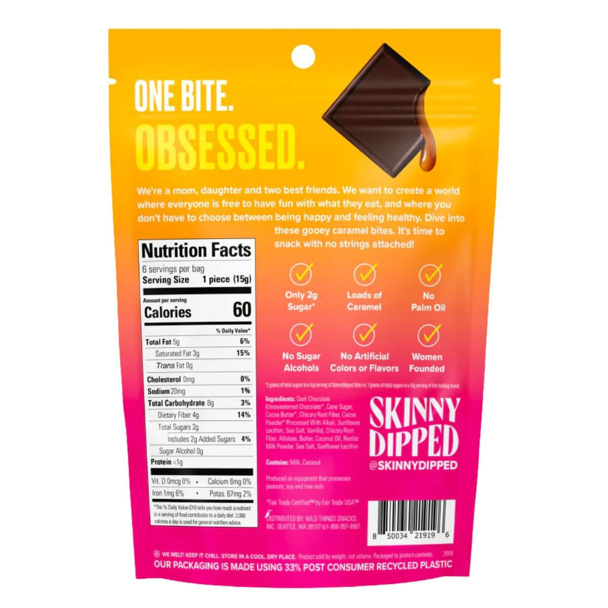 Dark Chocolate Salted Caramel Bites - Dark Chocolate (Unsweetened Chocolate, Cane Sugar, Cocoa Butter*, Chicory Root Fiber, Cocoa Powder* Processed with Alkali, Sunflower Lecithin, Sea Salt, Vanilla), Chicory Root Fiber, Allulose, Butter, Coconut Oil, Nonfat Dry Milk, Sea Salt, Sunflower Lecithin.