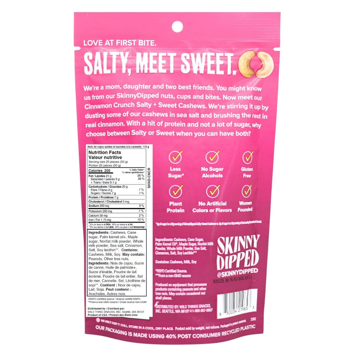 Sweet or salty…why not both? Skinny Dipped’s Sweet + Salty Cashews has the best of both worlds, with some cashews sprinkled with a touch of savoury sea salt while others are dusted in real cinnamon and maple sugar for a bite that’s perfectly balanced and absolutely addictive every time. It’s like your favourite childhood cinnamon-sugar cereal, all grown up, but with way less sugar and way more crunch! With no artificial flavours or colours, Skinny Dipped has really stripped away the unnecessary, and leaves you with nothing but an irresistible cashew snack!